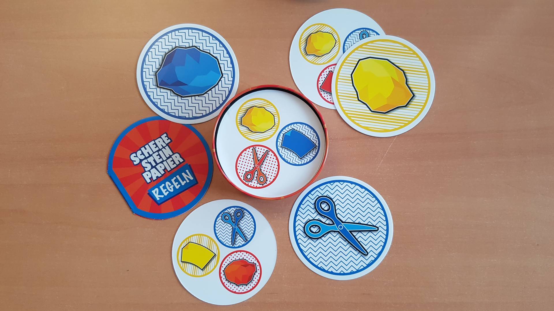 Hab die Karten mit den Schere, Stein und Papier Symbolen genau im Blick. Versuche so schnell es geht die Symbole der gleichen Farbe zu erkennen und forme mit deiner Hand blitzschnell das entsprechende Symbol um deine Mitspieler zu schlagen. Wenn die beiden Symbole identisch sind, klatsche schnell in die Hände. Du musst schnell sein und so viele Karten wie möglich sammeln, wenn du deine Gegner schlagen willst. Ein beliebtes Spiel in neuer Variante - zeige Geschwindigkeit und Kombiniere schnell!