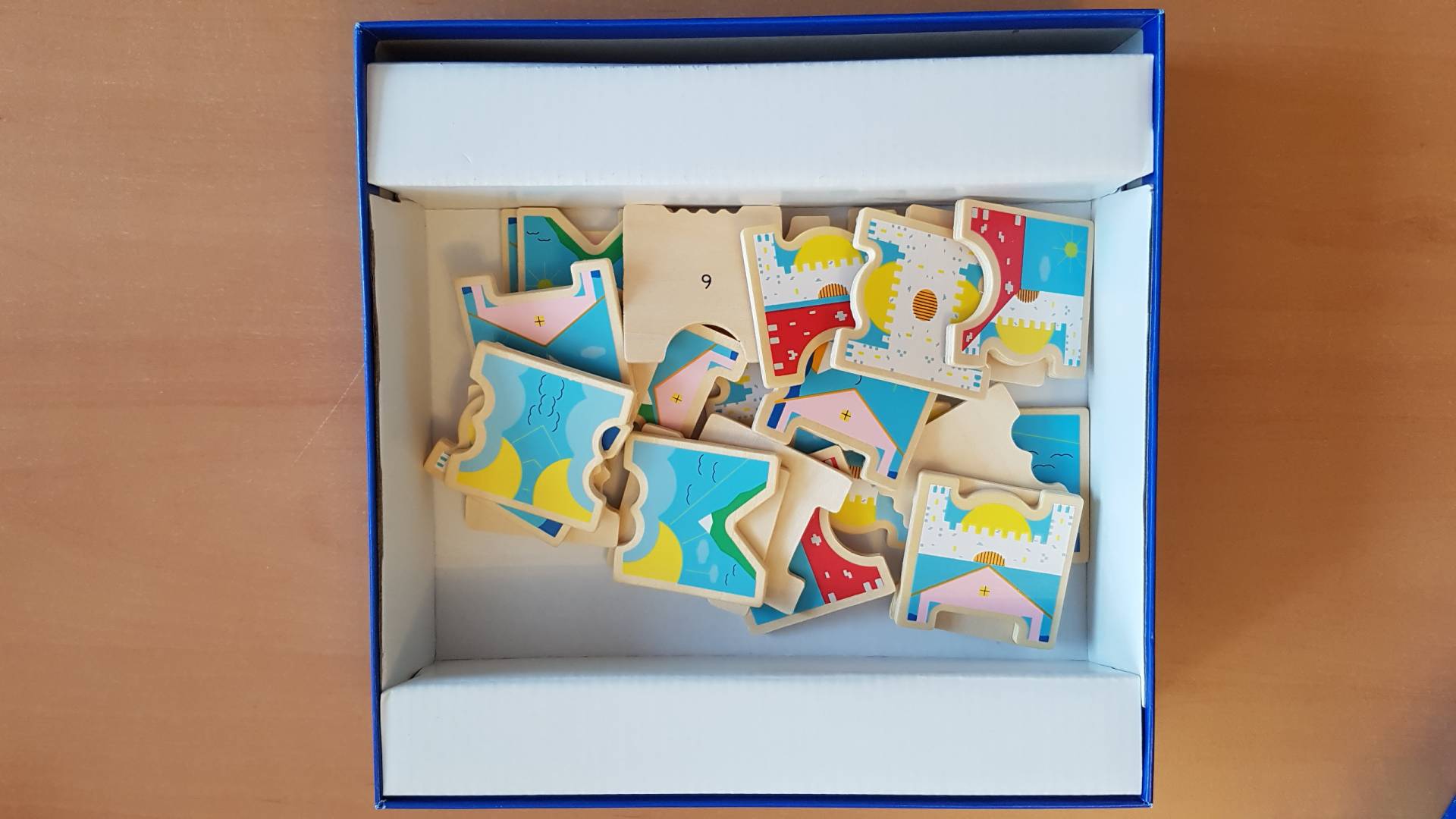 Domino, bei dem passende bunte Motive aneinander gelegt werden, bis alle Karten ausgelegt sind. Die zweite Möglichkeit ist, die passende Dominokarte zu „erfühlen“. Dafür hat jeder eine gewisse Anzahl Karten in einem Beutel. Gewinner ist immer der Spieler, der alle seine Dominokarten ablegen konnte.