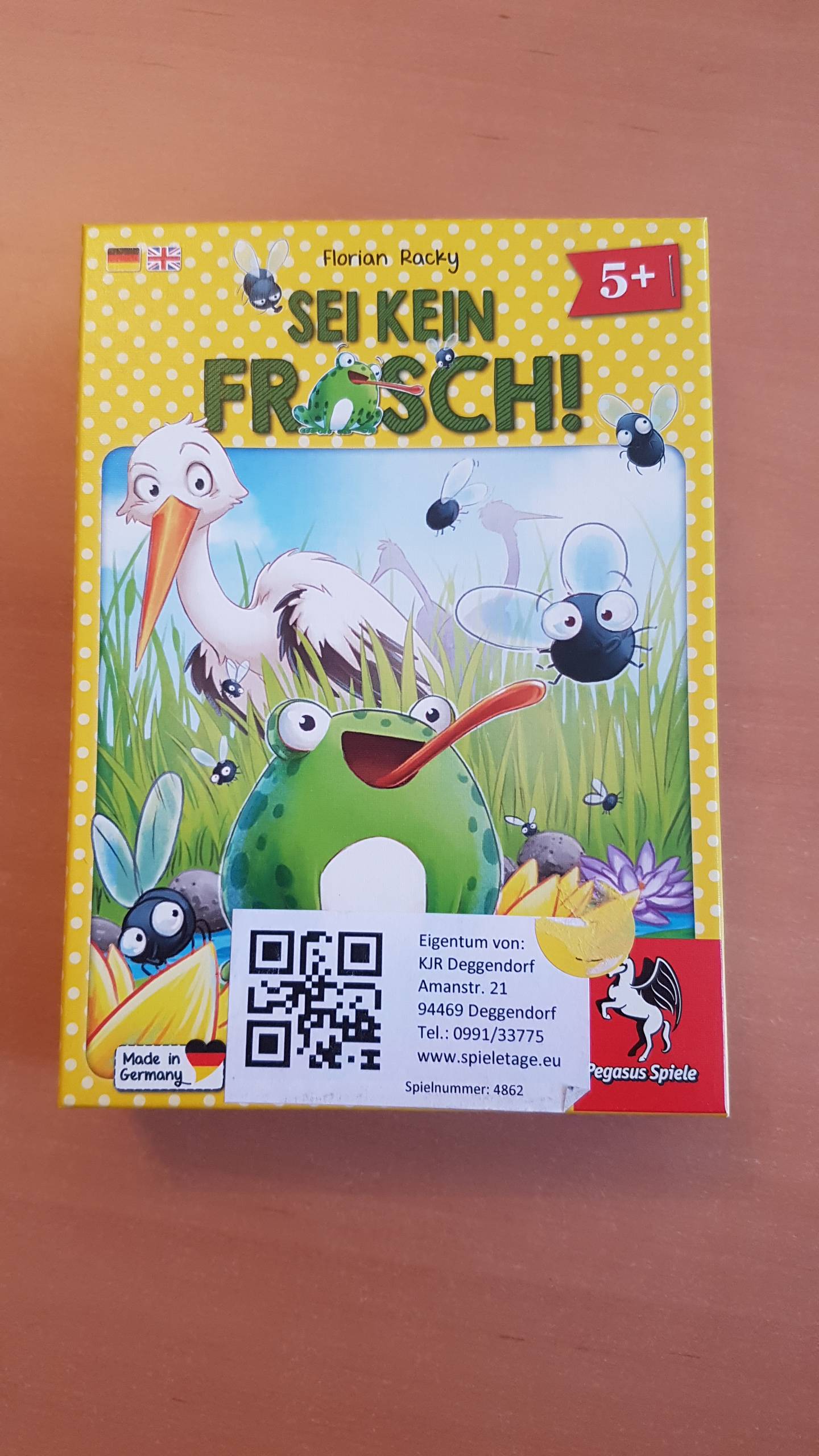 Auf der Jagd nach schmackhaften Fliegen hüpfen die dicken, kleinen Frösche von Seerose zu Seerose. Doch Vorsicht ist geboten, denn ein Storch treibt am Teich sein Unwesen. Jede Runde lassen die Spieler ihre Frösche auf den neun Seerosen umherreisen. Ein Würfel gibt dabei vor, wie weit ein Frosch mindestens springen muss, doch frei nach dem Motto „Sei kein Frosch!“ darf er auch weiter gezogen werden, um noch mehr Fliegen zu fangen. Zwischen den Blüten liegen verdeckte Karten, die beim Überspringen aufgedeckt werden. Fliegen dürfen am Ende des Zuges eingesammelt werden und bringen Punkte, doch ist ein Storch unter den Karten, geht der Spieler leer aus. Es gewinnt der Frosch, der am Ende die meisten Fliegen ergattert hat.