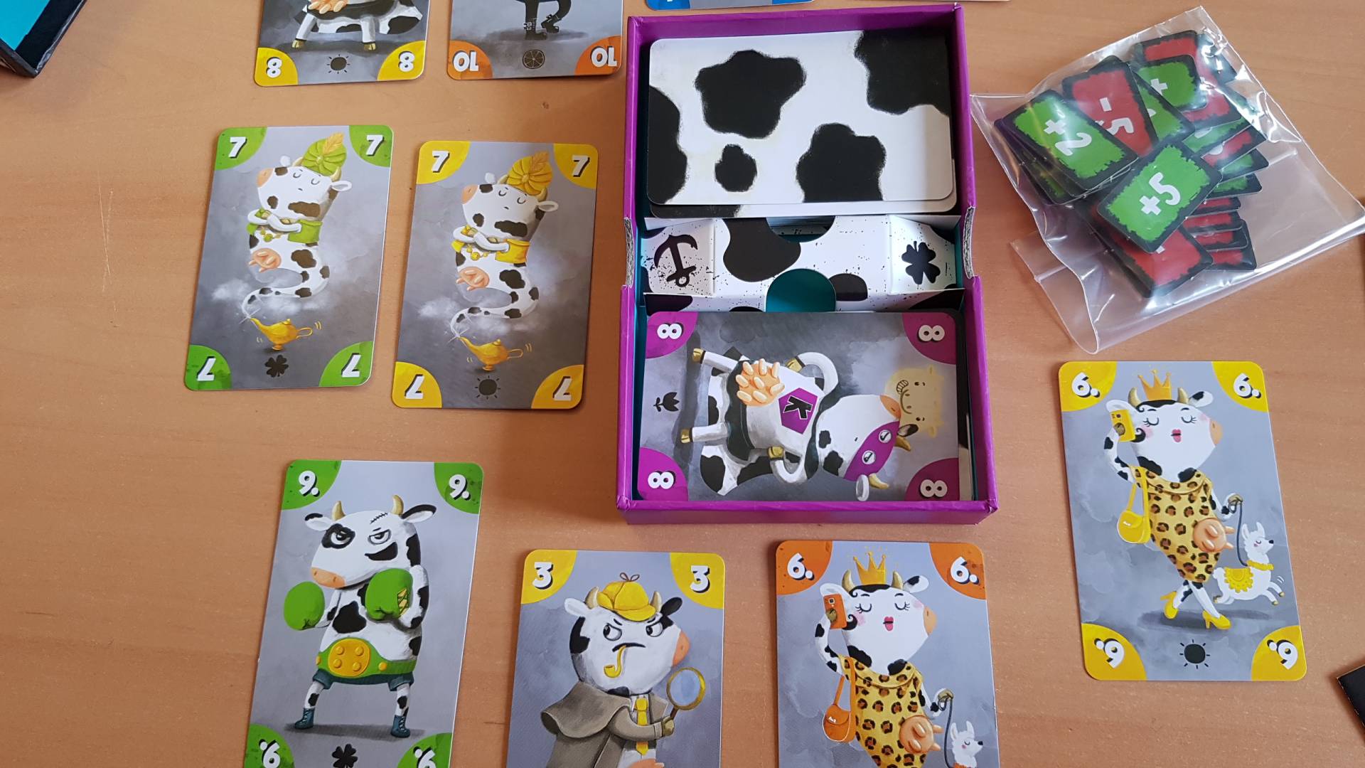 Verflixt und zugemuht! Gerade hat man mit seinen Karten noch fette Punkte gemacht und im nächsten Augenblick hat einem diese blöde Kuh satte Minuspunkte um die Ohren. Das kann doch nicht wahr sein! Jetzt heißt es gut spielen und Steilvorlagen für die Mitspieler vermeiden. Denn nur wer als Erster einen Auftrag erfüllt, staubt die heiß umkämpften Punkte ab und kann es schaffen, dieses lässige Kartenspiel zu gewinnen. Und die lästigen Minuspunkte? Die werden natürlich einfach den Mitspielern untergejubelt. Na, wer ist die Böse Kuh auf dieser Spielwiese?