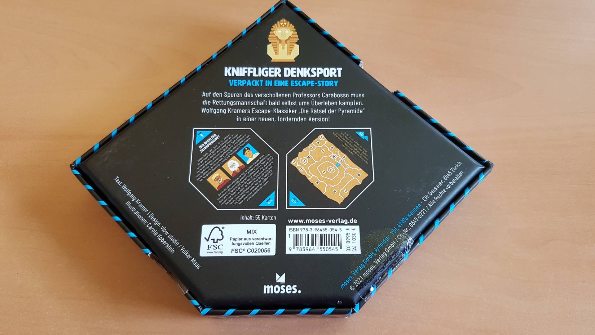 Das Team um den renommierten Ägyptologen Professor Carabosso startete vor einigen Tagen mit der Erkundung einer neu entdeckten Grabanlage und gilt seitdem als vermisst. Eine Rettungsmission, die das Team ausfindig machen und bergen sollte, kehrte ebenfalls nicht zurück. Jetzt kommen Sie ins Spiel: Schaffen Sie es, die Rätsel zu lösen und sowohl Professor Carabosso als auch die Rettungsmannschaft vor dem Verderben zu bewahren? Klingt wie ein Escape-Game? Ist es auch! Die Rätsel sind mindestens so aufregend, aber nicht ganz so zeitintensiv wie ein ganzes Escape-Room-Spiel. Der perfekte Zeitvertreib also für alle, die gerade keine Zeit für ein ganzes Escape-Game haben. Erleben Sie Wolfgang Kramers Escape-Klassiker „Die Rätsel der Pyramide“ in einer neuen, fordernden Version!