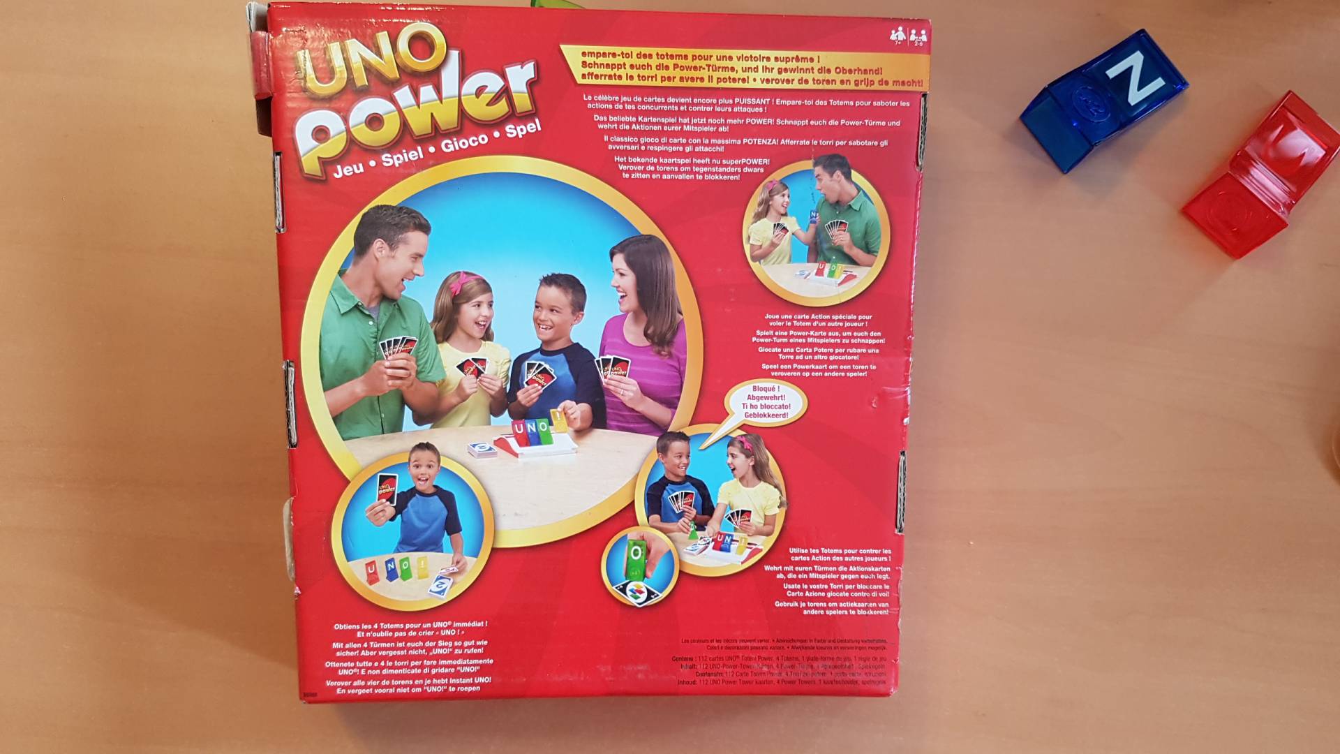 Zum neuesten Mitglied der UNO-Familie gehören Power-Türme, mit denen sich Aktionskarten blockieren oder Mitspieler sabotieren lassen. Die Spielregeln sind ähnlich dem klassischen UNO, allerdings darf der spieler, der alle vier Power-Türme gesammelt hat, sofort alle Karten, bis auf eine, aus der Hand legen und "UNO!" rufen.