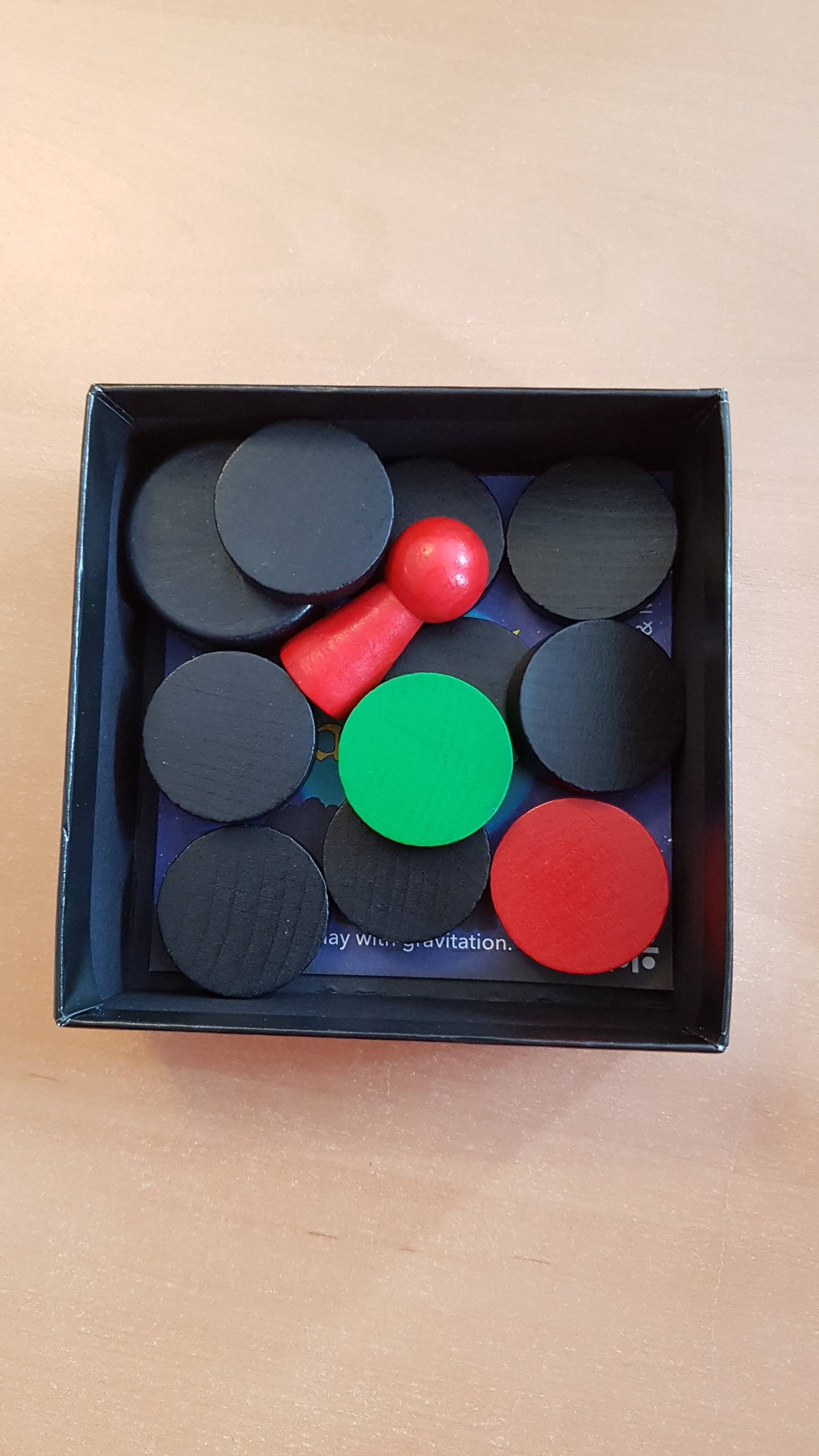Mit Hilfe einer Holzscheibe und etwas Treffsicherheit können wir jeweils die unterste Etage des Turms herausschnippen — ohne, dass das Gebäude umstürzt! Das Gesetz der Schwerkraft machts möglich. Natürlich gelingt es nicht immer — wäre auch langweilig… Die Anderen wollen schließlich auch mal an die Reihe kommen.
