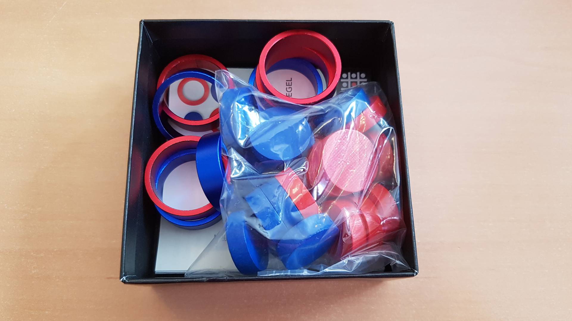 Vier gewinnt! - das Thema ist bekannt, aber selten wurde es so originell variiert: Das Spielfeld besteht aus acht roten und blauen Ringen. Wer am Zug ist platziert eine seiner Scheiben in einen beliebigen Ring und versetzt diesen anschließend. Eine Reihe aus vier Scheiben oder vier Ringen der eigenen Farbe ist das Ziel. Die Raffinesse des ungewöhnlichen Zugmechanismus von RINGO erschließt sich direkt.. Die Strategieebenen überlagern sich, das Spielfeld wandert und nur wer mit seinen Scheiben die Spur der Ringe geschickt verfolgt, wird den entscheidenden Vierer machen.