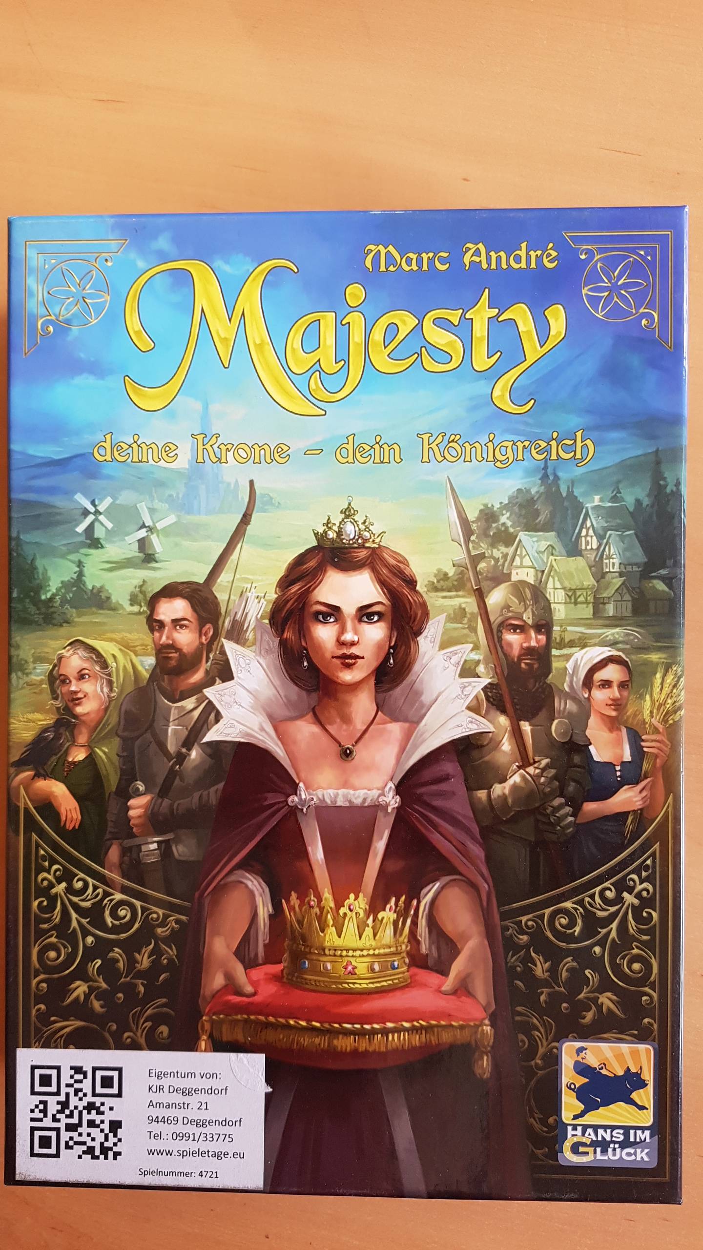 Als angehende Königinnen und Könige versuchen die Spieler, ihr Reich aufzubauen, um gekrönt zu werden. Doch dazu ist die Hilfe der Untertanen erforderlich. Die Müllerin oder eine Adlige, die Hexe oder der Wirt, jede Person kann eine entscheidende Rolle im Königreich spielen. Nimmt man sich die wertvollste Person zur richtigen Zeit ist schnell viel Gold verdient. Doch Vorsicht vor den Nachbar-Königen! Haben die Spieler nicht genügend Wachen angeheuert, kann es sein, dass die gegnerischen Soldaten einen Besuch abstatten...Mit seinen leichten Regeln ist MAJESTY, DEINE KRONE - DEIN KÖNIGREICH das perfekte Spiel für Freunde und Familie. Einfach mal zwischendurch oder gleich ein paar Partien hintereinander spielen.