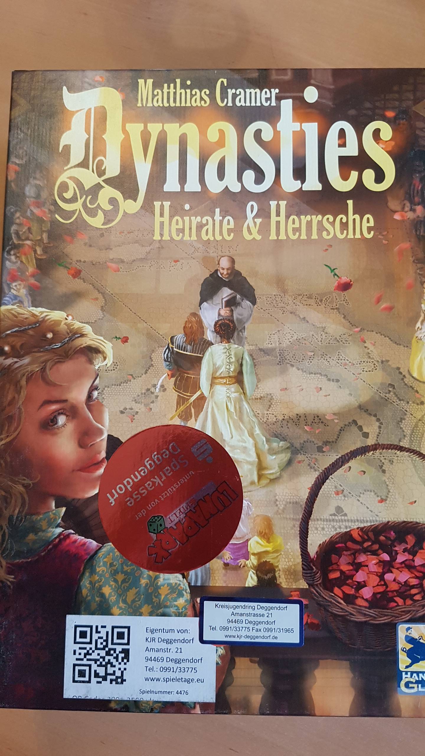 Das Europa der Renaissance wächst zusammen. Selbst die mächtigsten Dynastien erkennen, dass sie gemeinsam mehr erreichen. Es wird geheiratet, gehandelt und geteilt. Doch wer bekommt das größte Stück vom Kuchen? Bei Dynasties müssen die Spieler viele Kompromisse eingehen, mit eigenem Geschick agieren und auf das Verhalten der Mitspieler reagieren. Neben taktischen und strategischen Entscheidungen spielt auch das Glück ein bisschen mit, denn nicht jede Hochzeit bringt den erhofften Geldsegen. Vielleicht ist dann eine weitere Heirat von mehr Erfolg und Einfluss gekrönt?