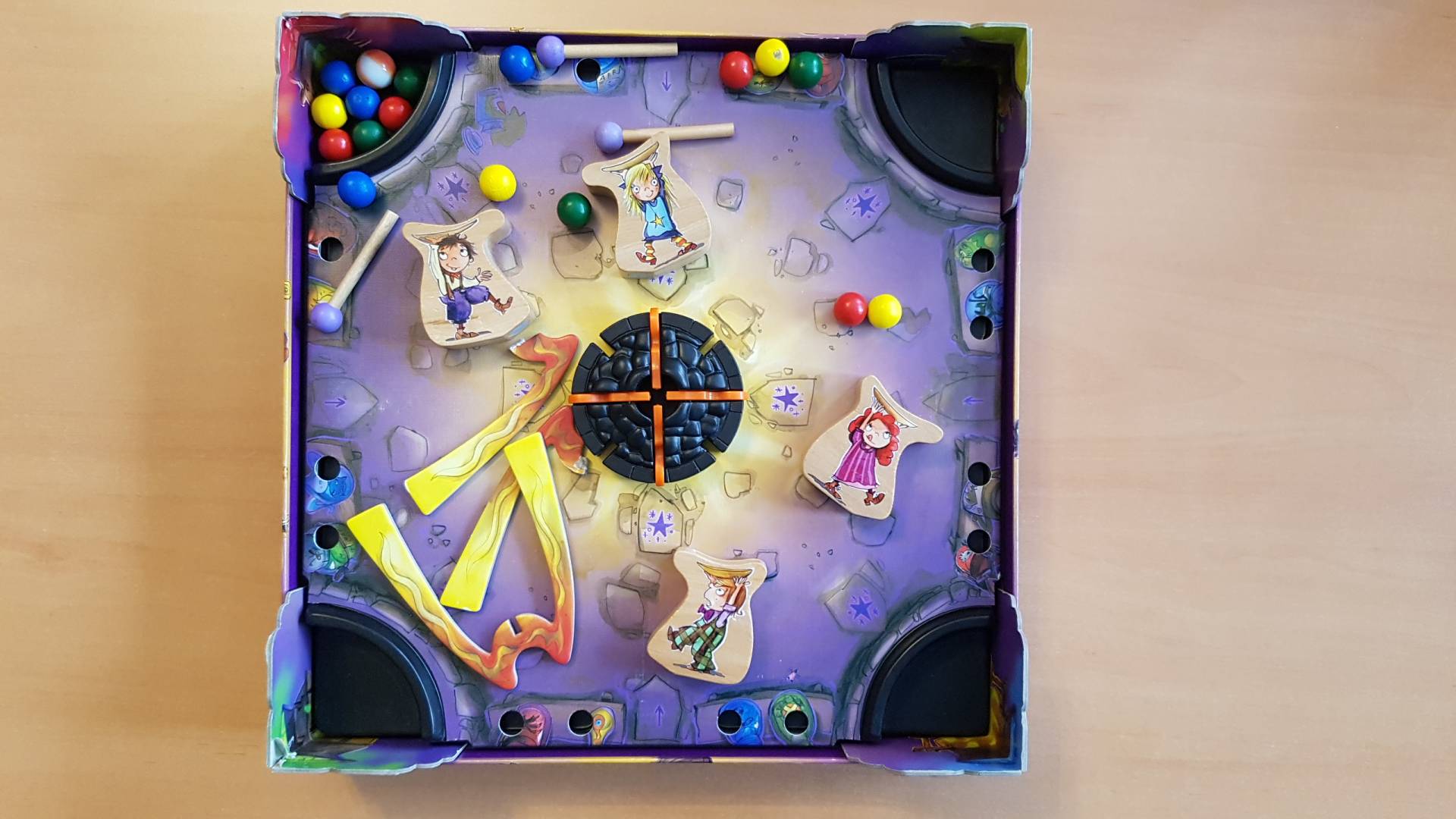 Die kleinen Zauberlehrlinge Zisch! Kawumm! Heute geht es heiß her in der Zauberküche, denn jede Zutat muss in den richtigen Kessel. Vorsicht, jetzt nur nicht stolpern! Krötenbein und Stolperstein, wer wird wohl der Erste sein? Die kleinen Zauberlehrlinge - das magische Geschicklichkeitsspiel mit dem Pop-up Feuer!