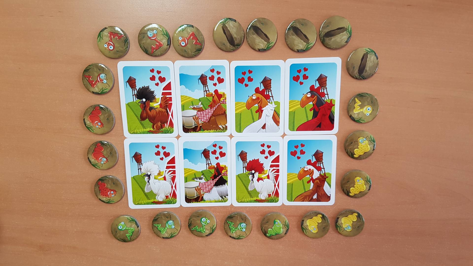 Der frühe Vogel fängt den Wurm für seine Liebste. Denn die Hühnerdamen haben sehr genaue Vorstellungen, welchen Wurm sie wollen. Und so machen sich die Hähne beim ersten Sonnenschein gackernd auf die Suche nach dem passenden Geschenk für ihr Herzblatt. Im lustigen Familienspiel Wär′ ich doch der Hahn im Korb müssen die Spieler so schnell wie möglich aus der verdeckten Auslage die passenden Wurmplättchen finden. Doch dabei haben sie nur eine Hand zur Verfügung und alle wollen natürlich die passenden Würmer haben.