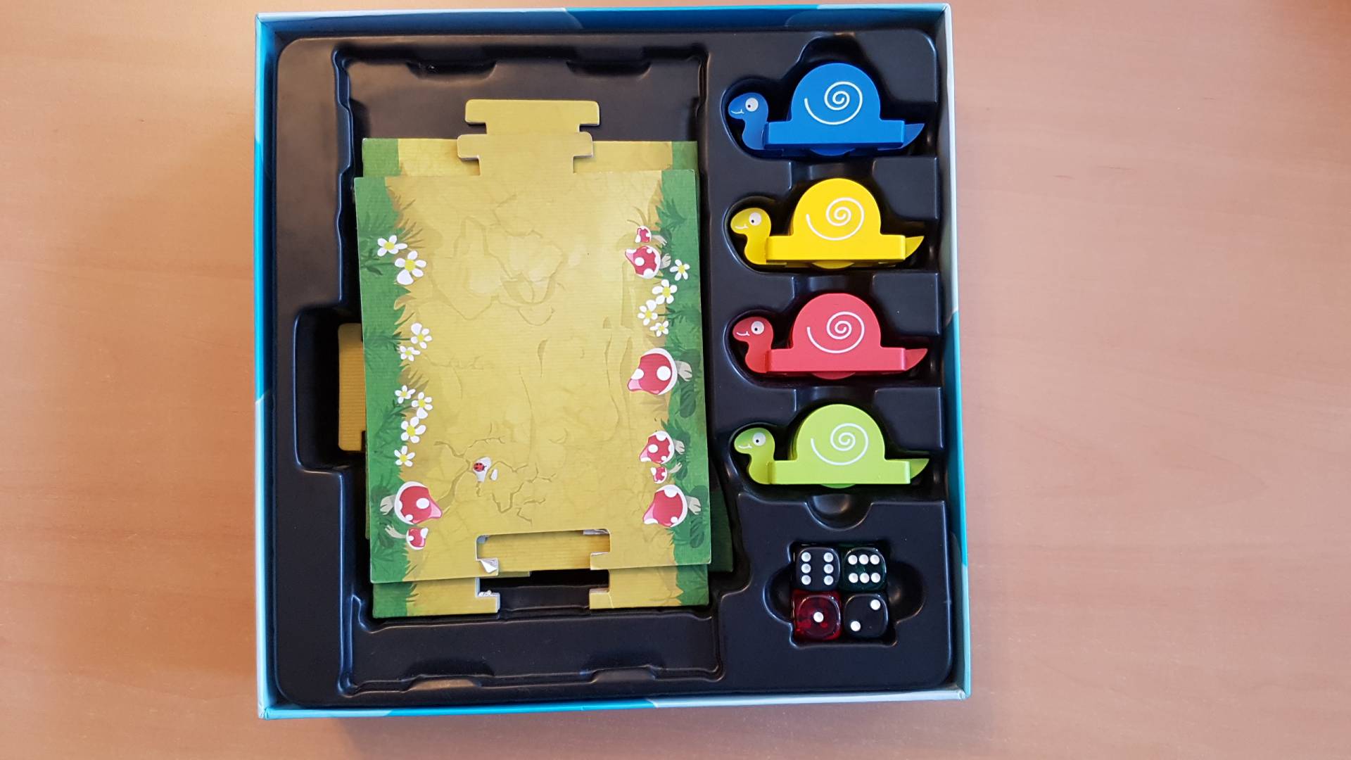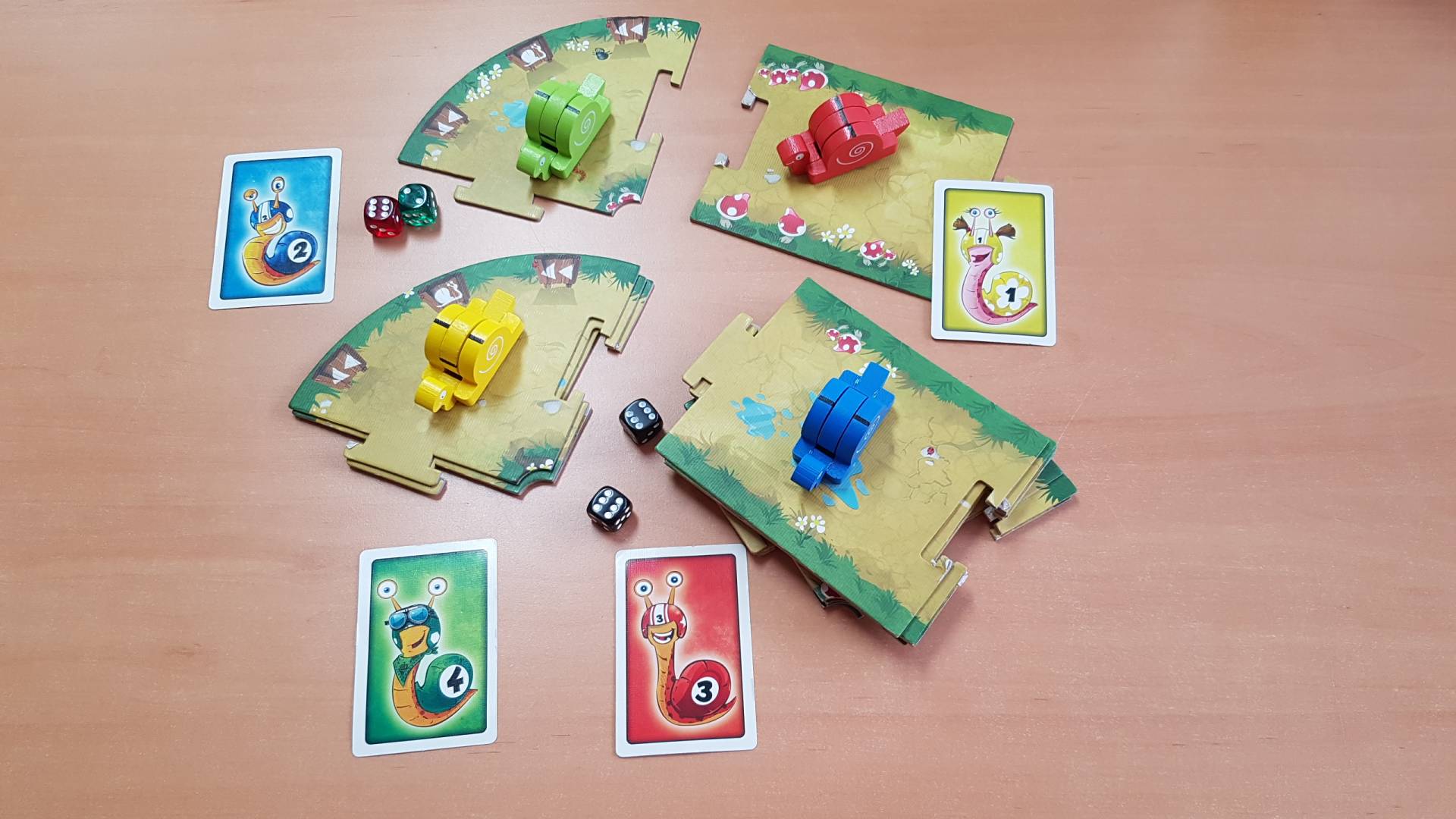 Zuerst wird aus den Streckenteilen ein Rennparcours erstellt. Der Motor dieses Spiels sind bis zu 4 Würfel. Die erstplatzierte Schnecke wirft eine Würfel, die zweitplatzierte Schnecke deren 2 und sucht sich einen passenden Würfel davon aus. Die drittplatzierte Schnecke hat schon 3 Würfel zur Auswahl und die viertplatzierte Schnecke kann 4 Würfel werfen und sich einen davon aussuchen.