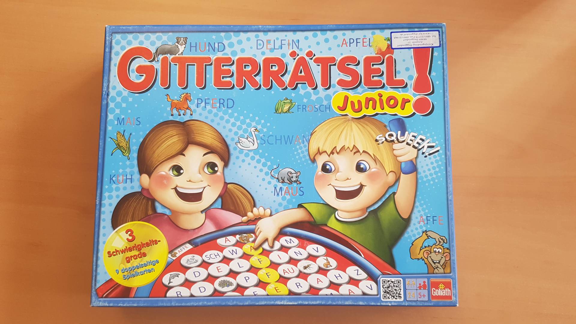 Das bekannte Spiel Gitterrätsel gibt es jetzt auch als Junior-Version, speziell für jüngere Spieler entwickelt. Mit vereinfachten Wortkarten, aber auch mit Bildkarten für die ganz Kleinen.
