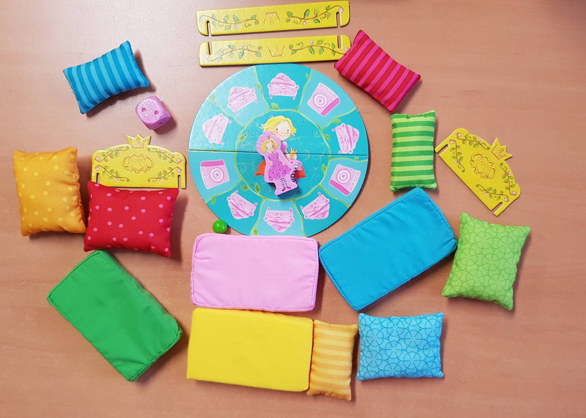 Erbsenprinzessin - Kissenstapelei ist der bekannte HABA-Kinderspiel-Klassiker in neuem Design. Besonders an dem Spiel ist das zauberhafte Spielmaterial: Enni Erbsenprinzessin bekommt ein komplettes Bett mit echten Matratzen, Kissen und Bettdecken. Außerdem gibt es zwei Spiele in einer Packung: eine kooperative und eine spannende Wettbewerbsvariante.