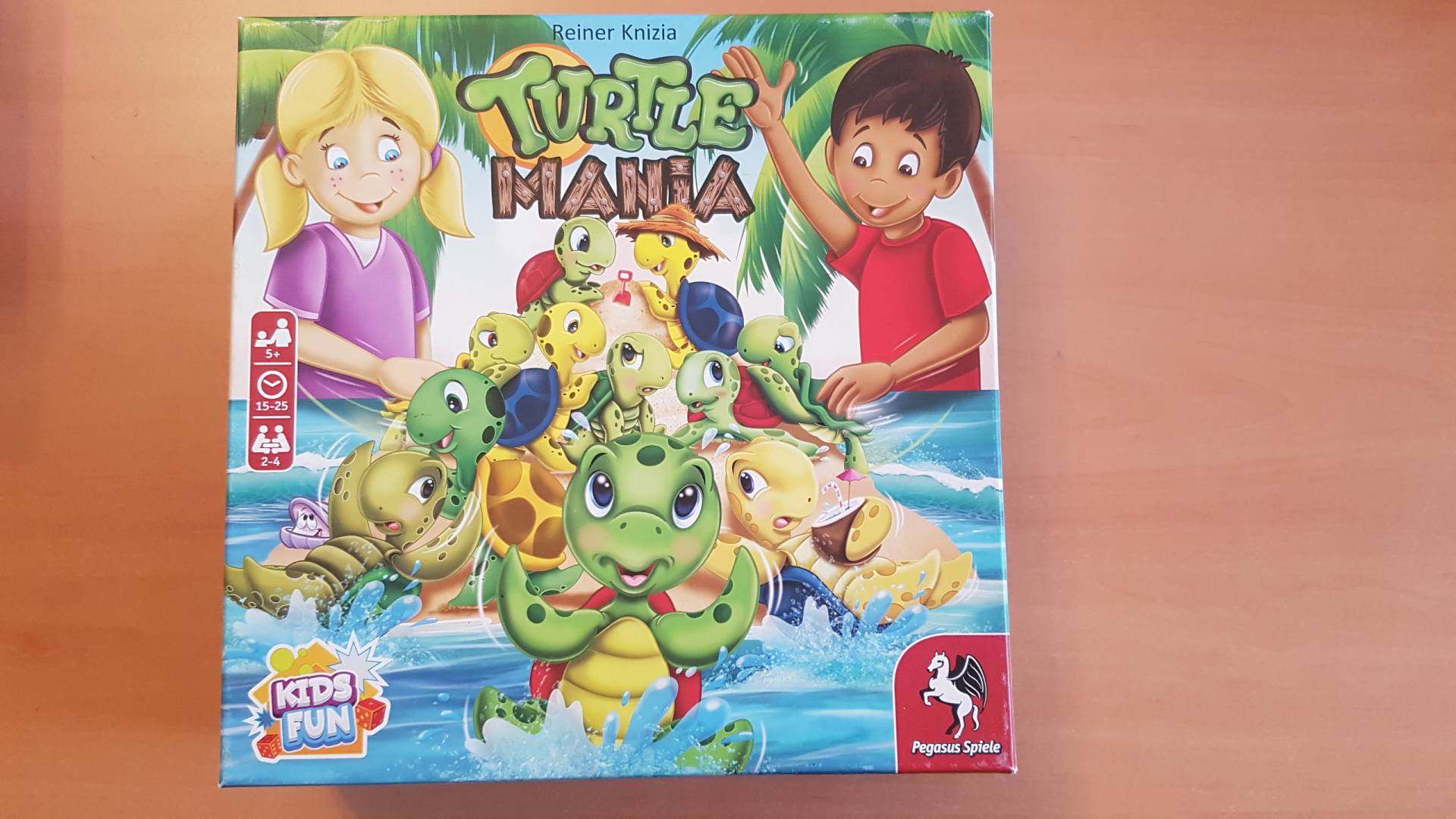 Es ist ein wunderschöner Tag auf der Sonneninsel „Turtle Island“. Verständlicher Weise wollen sich die Schildkröten lieber am warmen Sandstrand tummeln als im kalten Wasser, doch leider ist nicht genug Platz für alle. In Turtle Mania versuchen die Spieler für die gepanzerten Tierchen einen Platz am Strand zu finden. Dazu müssen sie jede Runde eine Schildkröte von einem Steg auf den Strand schieben, möglichst ohne dass dabei andere Schildkröten ins Wasser fallen, denn sonst muss der Spieler diese als Strafe einsammeln. Fällt eine gelbe Schildkröte ins Wasser, ist der Spieler ein zweites Mal dran. Hat ein Spieler drei Schildkröten derselben Farbe oder sieben beliebige von der Insel verdrängt, verliert er und beendet damit das Spiel. Wer nun die wenigsten Schildkröten besitzt, gewinnt.