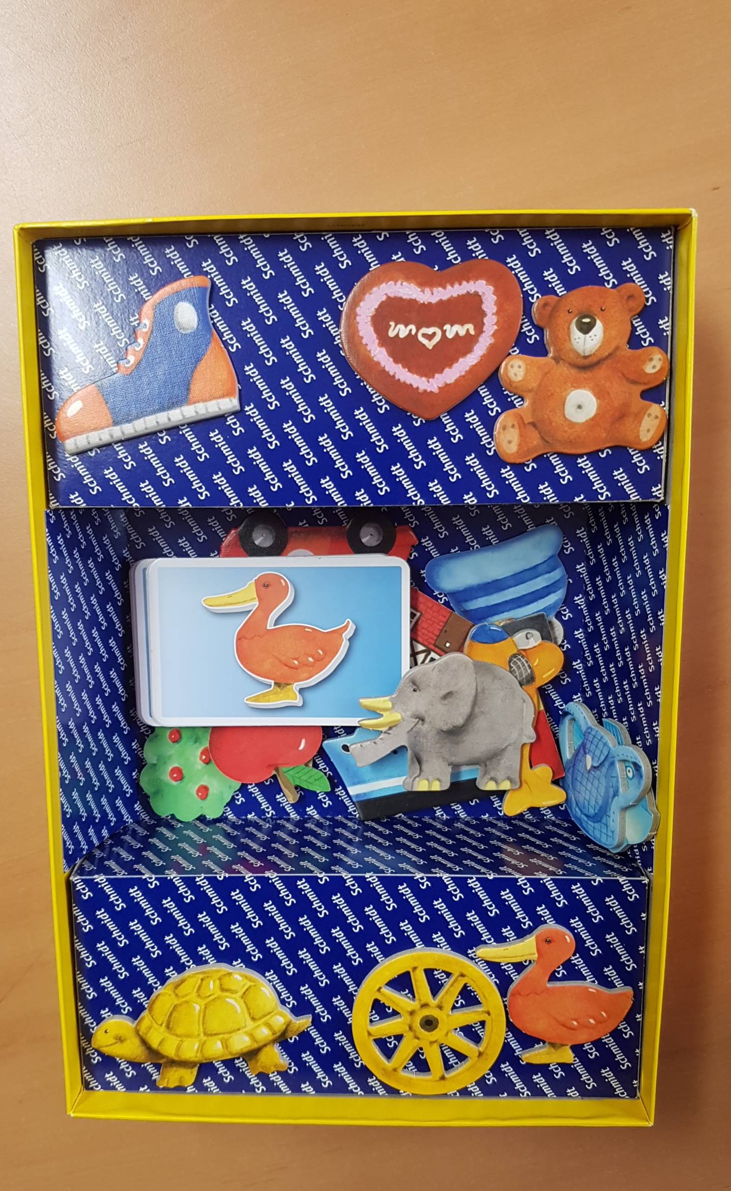 Bis zu drei kleine Zwerge krabbeln im großen Fühlsack und versuchen, die Pappformen zu ertasten, die auf den Bilderkarten zu sehen sind. Gar nicht so leicht. Und schnell muss es gehen, denn der Würfelzwerg würfelt parallel, was das Zeug hält, um schnell selbst wieder nach den richtigen Formen suchen zu können.