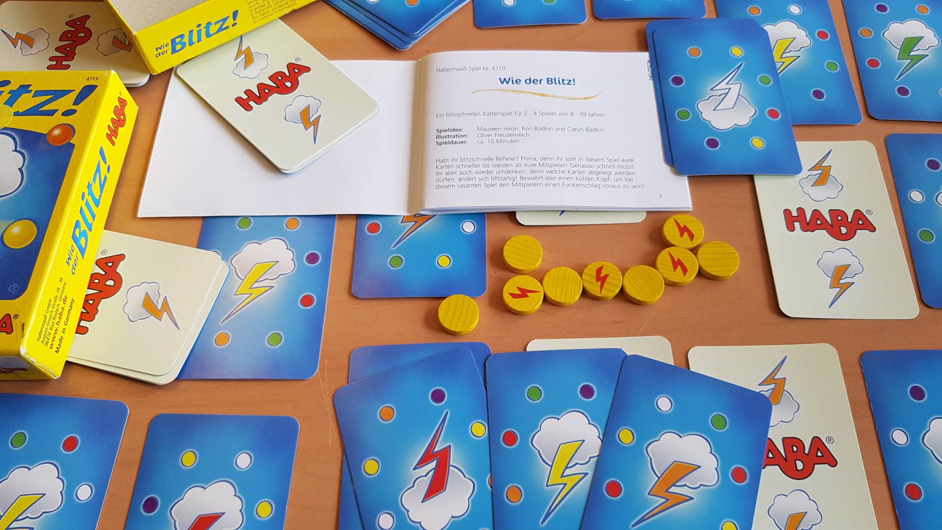 Es werden mehrere Runden gespielt. Wer konzentriert bei der Sache ist und seine Karten am schnellsten nach den Farbregeln der Blitzkarten ablegt, bekommt einen Blitz aus Holz. Das Ziel des Spiels ist, als erster drei Blitze zu sammeln.