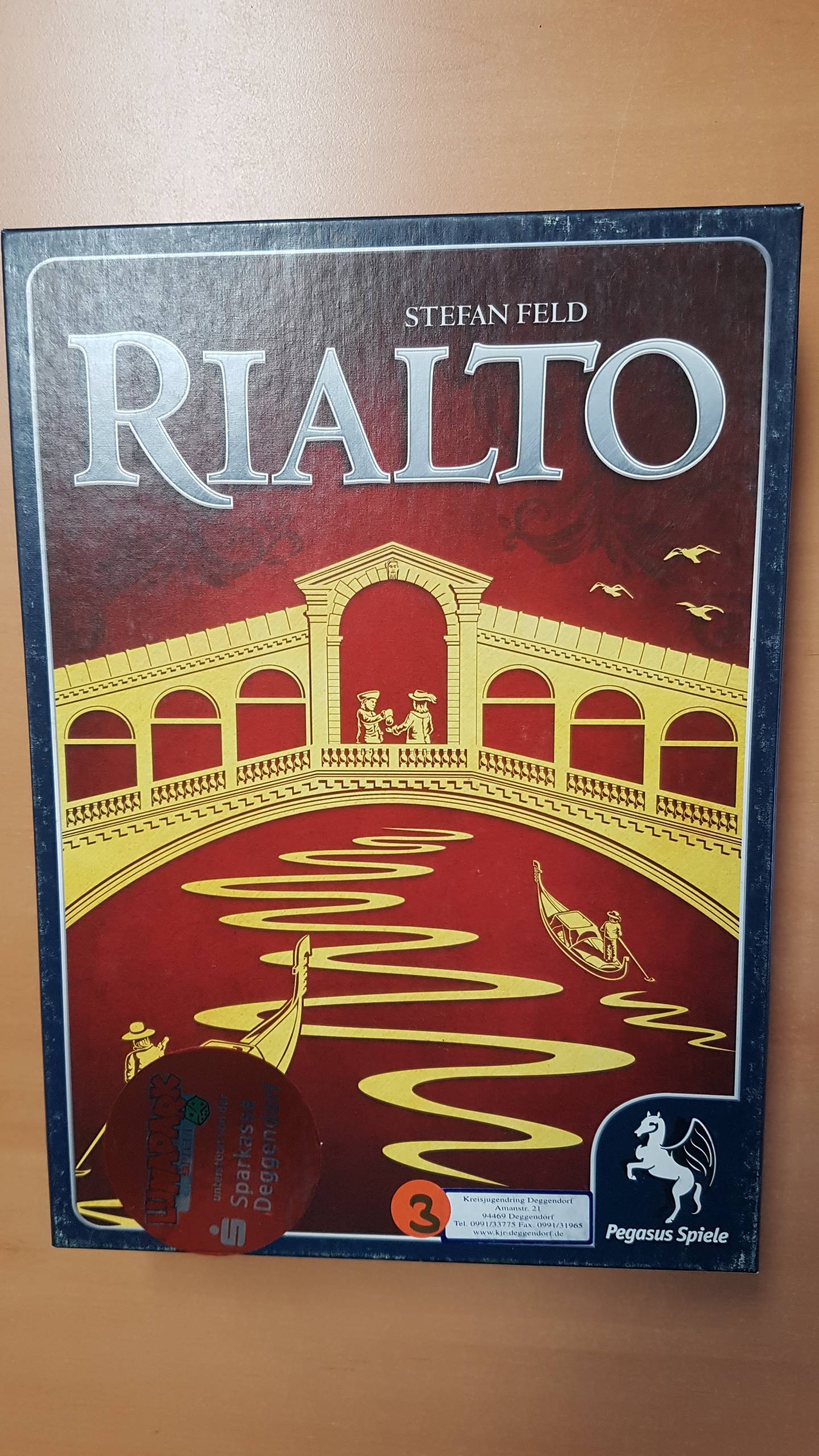 Bei „Rialto“ handelt es sich um ein gehobenes Familienspiel mit einem neuartigen Kartenmechanismus. In „Rialto“ werden Brücken gebaut, Gondeln geordert, um Stadtteile gestritten, Gebäude errichtet und auch der Doge hat ein gewichtiges Wörtchen mitzureden. Es ist für 2-5 Spieler und dauert 30 Minuten bis eine Stunde. Durch den geschickten Einsatz von Karten versuchen die Spieler, Brücken zwischen den Stadtteilen Venedigs zu errichten, mit ihren Ratsmitgliedern Mehrheiten in den Stadtteilen zu bilden und nützliche Gebäude zu errichten. Nach 6 Runden entscheidet sich, wer den größten Einfluss in der Stadt sammeln konnte.