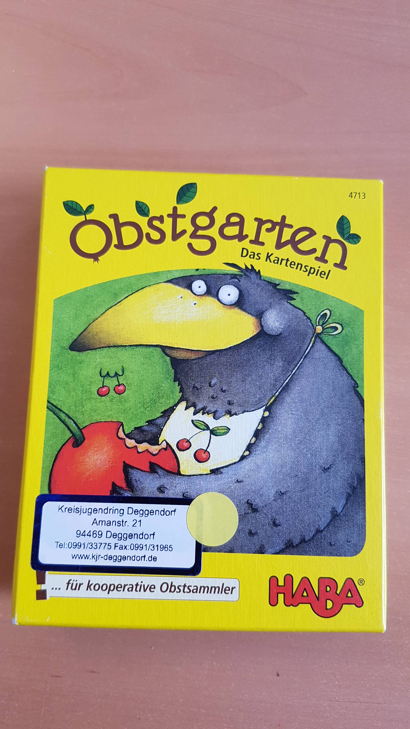 Obstgarten – Das Kartenspiel ist eine tolle Abwandlung des großen HABA-Spieleklassikers Obstgarten mit liebevoll gestalteten Spielkarten, welche die leckeren Früchte und niedlichen Obstkörbe zeigen. Das kooperative Kartenspiel stärkt das Wir-Gefühl der Spieler, denn nur gemeinsam können sie es schaffen die Früchte zu ernten, bevor der freche Rabe den Obstgarten erreicht. Der farbige Würfel zeigt an, welche Frucht in den Korb gelegt werden darf oder ob sich der freche Rabe nähert. Das fördert das erste Erkennen und Benennen von Farben und Symbolen und macht jedem Obstliebhaber riesen Spaß.