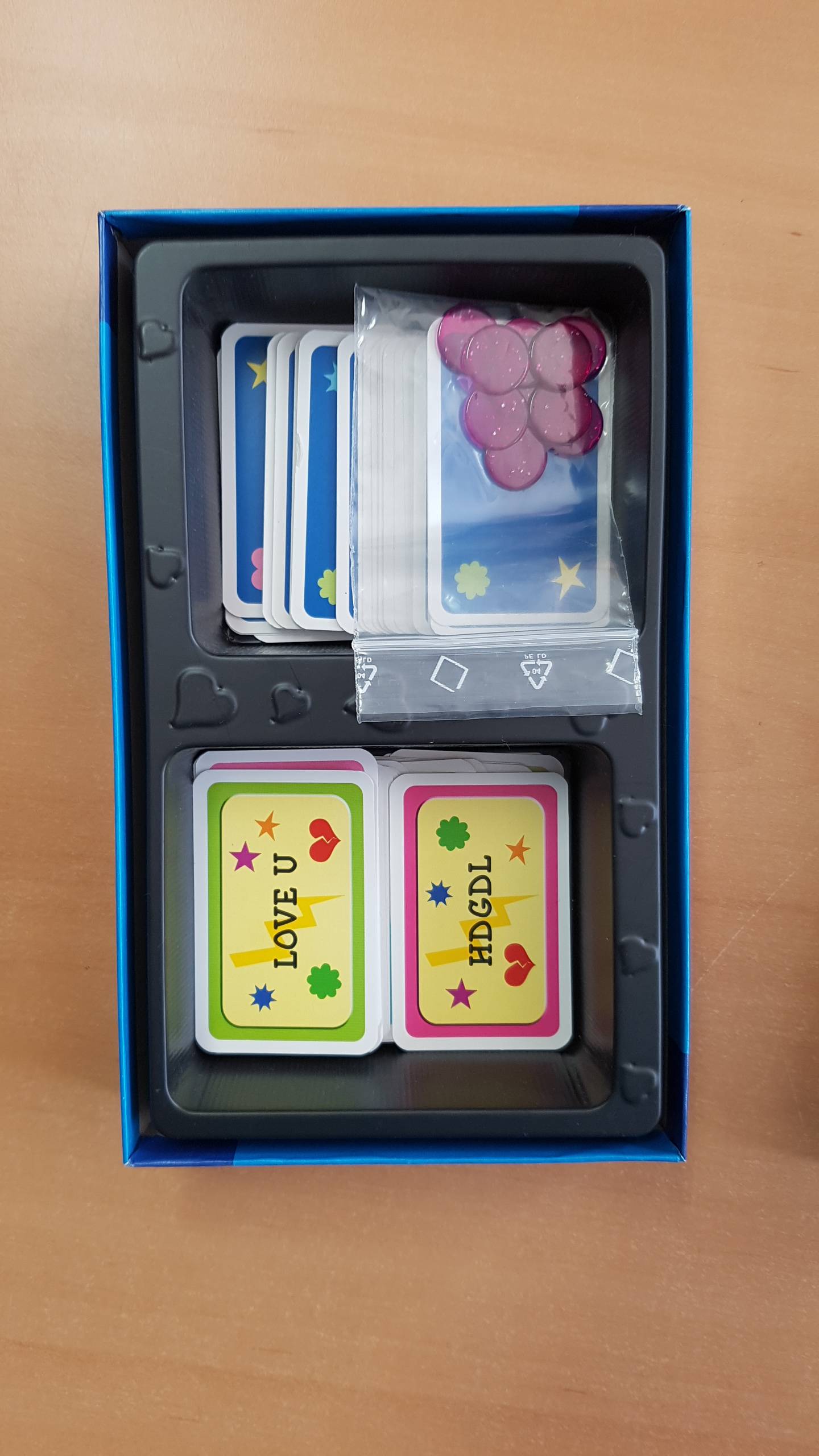Jede Spielerin erhält einen eigenen Satz mit neun verschiedenen SMS-Karten. Darunter befinden sich SMS-Formeln wie „love U“, „cu l8ter“ (see you later) oder „tabu“ (tausend bussis). Die SMS-Karten werden gemischt und verdeckt vor sich abgelegt. In der Mitte des Tisches werden, für alle gut erreichbar, die sogenannten „Suchkarten“ mit der dunkelblauen Rückseite nach oben ausgebreitet.