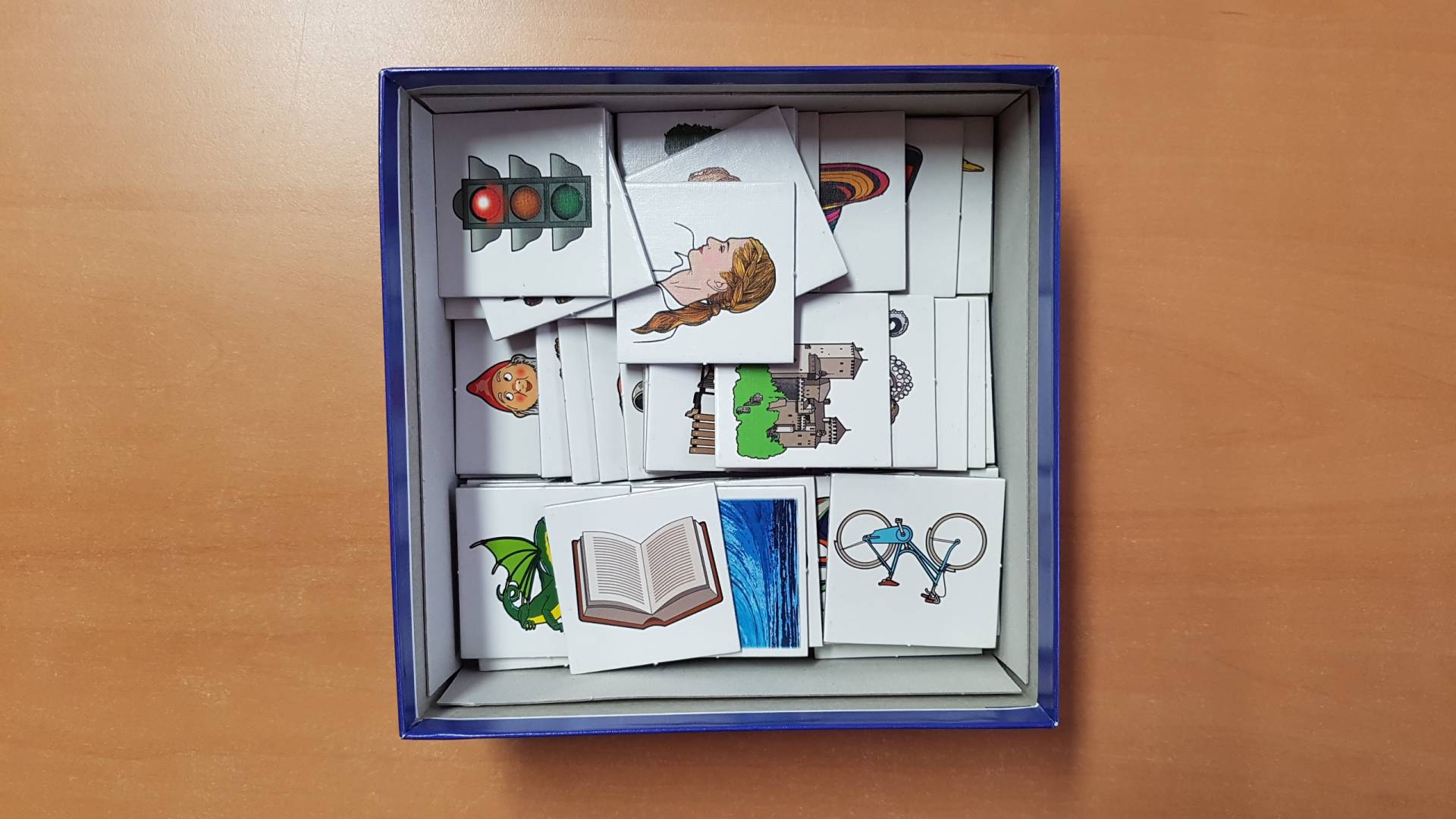 Begriffe zu den Abbildungen auf den Plättchen zu finden ist einfach. Eine Uhr, ein Schuh, ein Flugzeug, ... Doch reicht das auch, um zu gewinnen? Schließlich müssen die Begriffe, die den Abbildungen auf den Plättchen zugeordnet werden, in einer bestimmten Reihenfolge abgelegt werden.