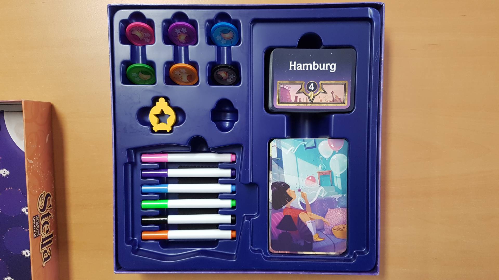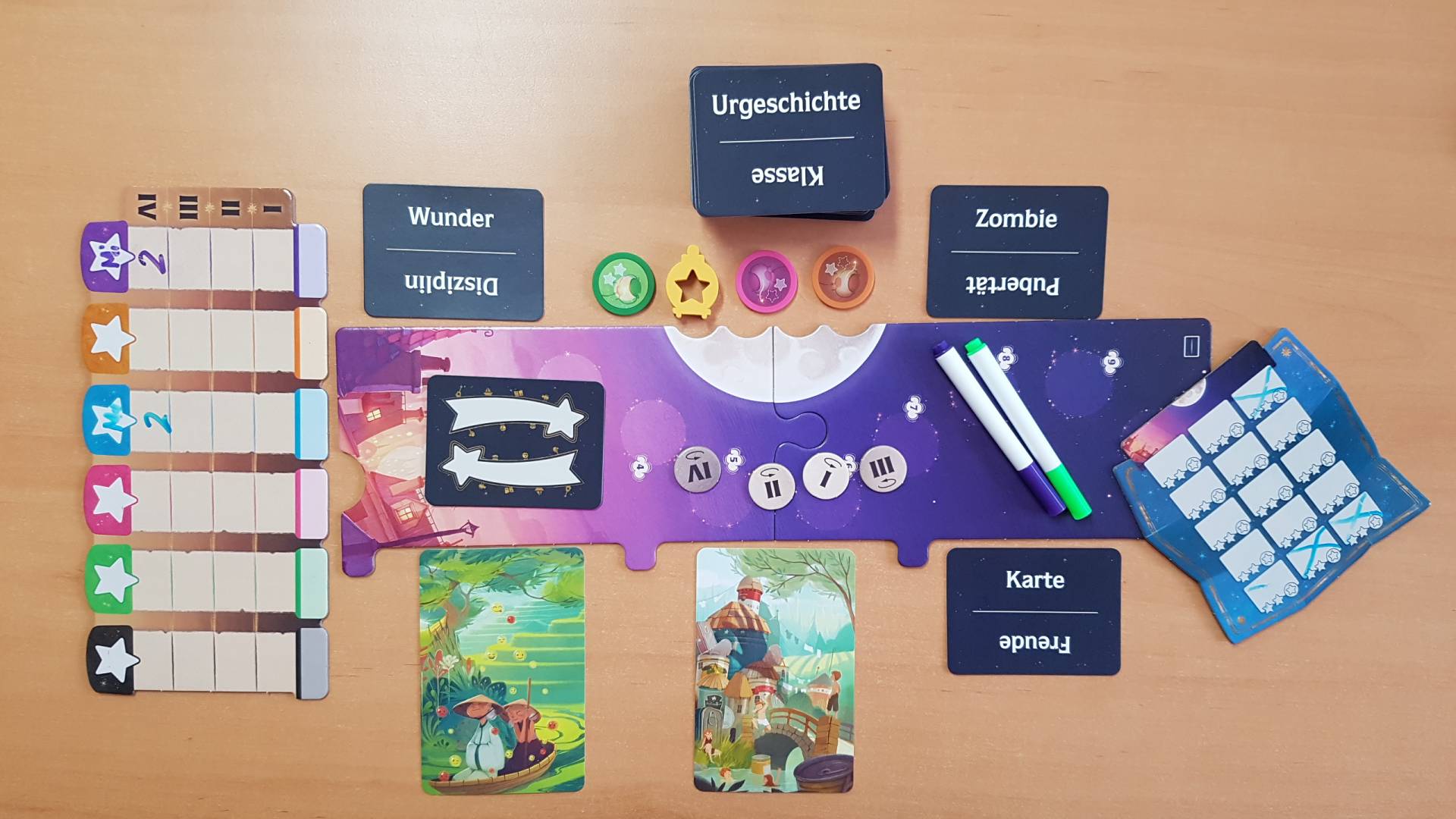 Stella – Dixit Universe ist ein kompetitives Spiel im Dixit-Universum, bei dem ihr Bilder mit einem gemeinsamen Wort assoziieren müsst. Wähle die gleichen Bilder wie deine Mitspieler, um den Sieg zu erringen. Gehe kalkulierte Risiken ein, aber hüte dich vor dem freien Fall. In drei Reihen zu je fünf Karten liegen Bildkarten aus dem beliebten Dixit-Universum aus. Vier Wortkarten werden aufgedeckt, die Assoziationen zu den ausliegenden Bildern wecken sollen. Jeder hat ein persönliches Tableau, auf dem geheim eingetragen wird, welche Karten ihr mit den Begriffen verknüpft. Dabei muss jeder nicht nur für sich selbst überlegen, sondern versuchen, Übereinstimmungen mit seinen Mitspielern zu erlangen. Denn nur wenn mehr als ein Spieler eine Karte mit einem der Wörter verbindet, erhaltet ihr beide Punkte.