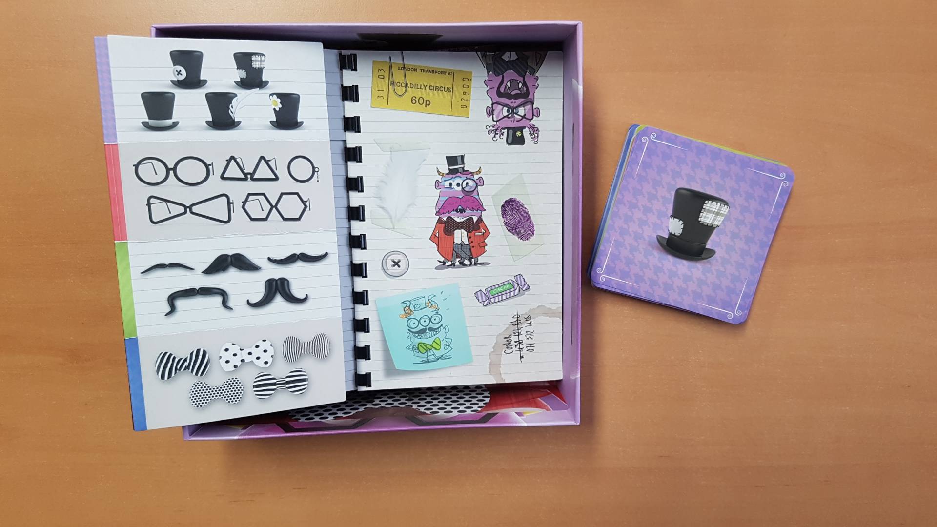 Im Kinderspiel Mia London von Scorpion Masque müsst ihr der jungen Detektivin Mia helfen, den Bösewicht zu schnappen. Vier Merkmale gilt es herauszufinden: Welchen Hut, welche Brille, welchen Schnurrbart und welche Fliege trägt der Gauner?