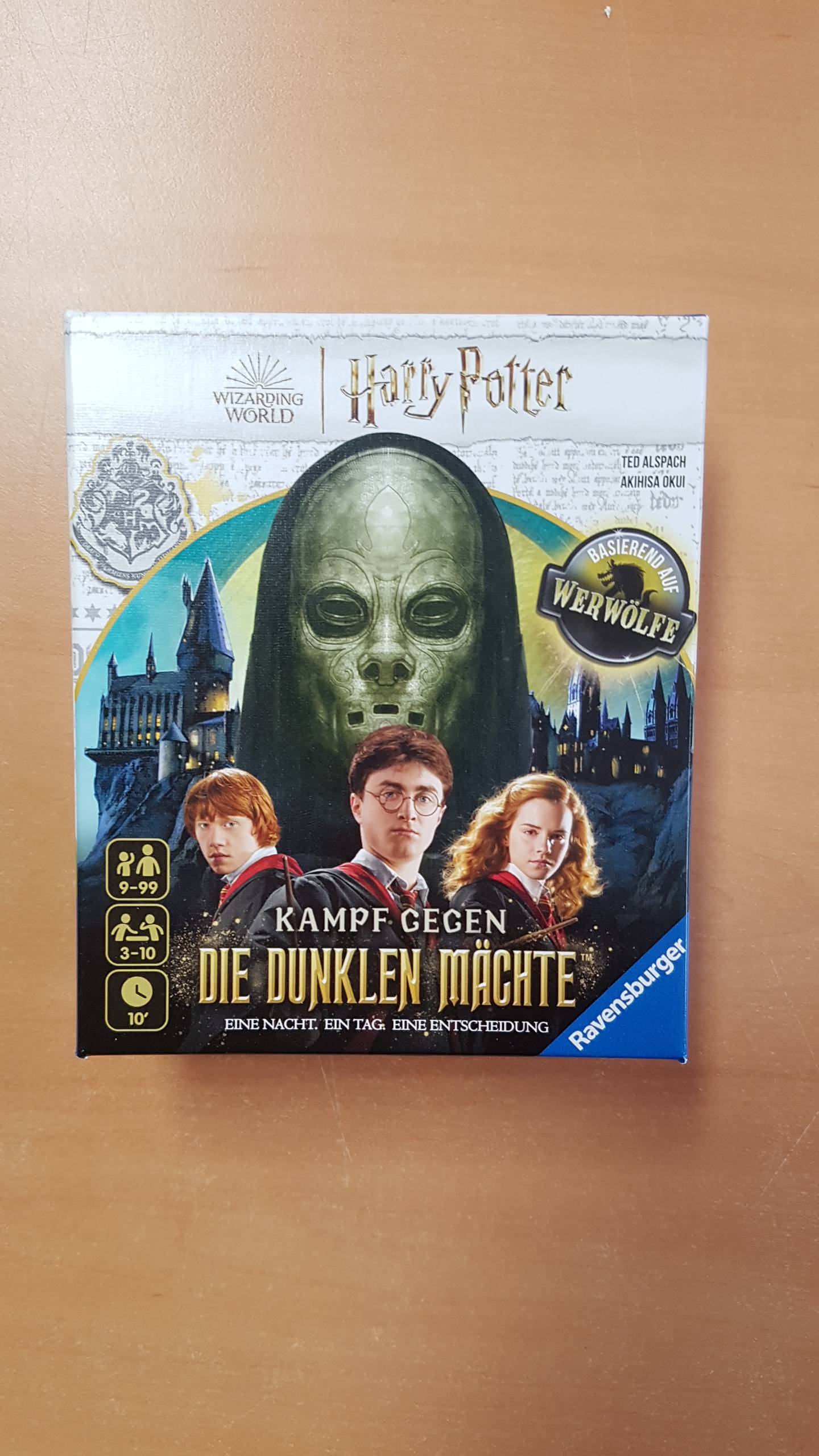 „Harry Potter – Kampf gegen die dunklen Mächte“ ist ein schnelles Rollenspiel, in dem es um Zaubern, Bluffen und Vertuschen geht. Wer sind die gefährlichen Todesser? Und wer sind die Hogwarts Zauberer und Hexen wie Harry, Ron und Hermine, die die Todesser durch Magie enttarnen können?