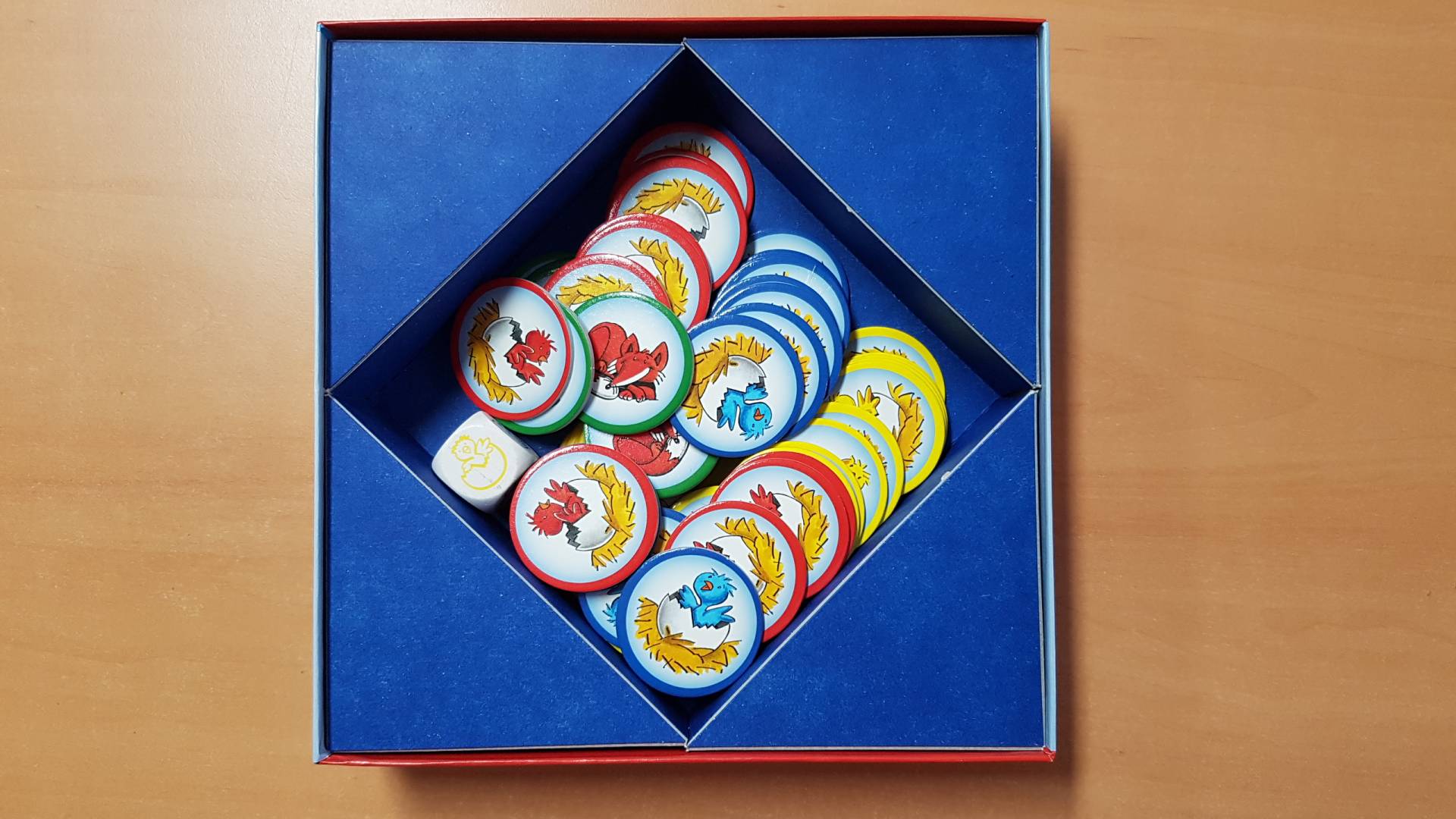 Der Würfel zeigt an, ob ein rotes, gelbes oder blaues Küken ausgebrütet werden soll. Jetzt ist Reaktion gefragt! Die Spieler schauen schnell nacheinander unter ihre Eier, ob sich ein solches Küken dort verbirgt. Hat ein Spieler ein passendes Küken gefunden, legt er es rasch ins Nest auf den Tisch, hält seine Hand darüber und gackert laut. Aber aufgepasst! Deckt ein Spieler einen Fuchs auf und legt ihn ins Nest, dann ruft er laut: „Vorsicht, Fuchs!“ Alle Spieler müssen möglichst schnell ihre Hand auf das Nest legen, also Hand auf Hand. Wer am langsamsten ist, muss ein Ei, das er schon gesammelt hat abgeben. Hat er noch kein Ei gesammelt, dann muss er auch nichts abgeben.
