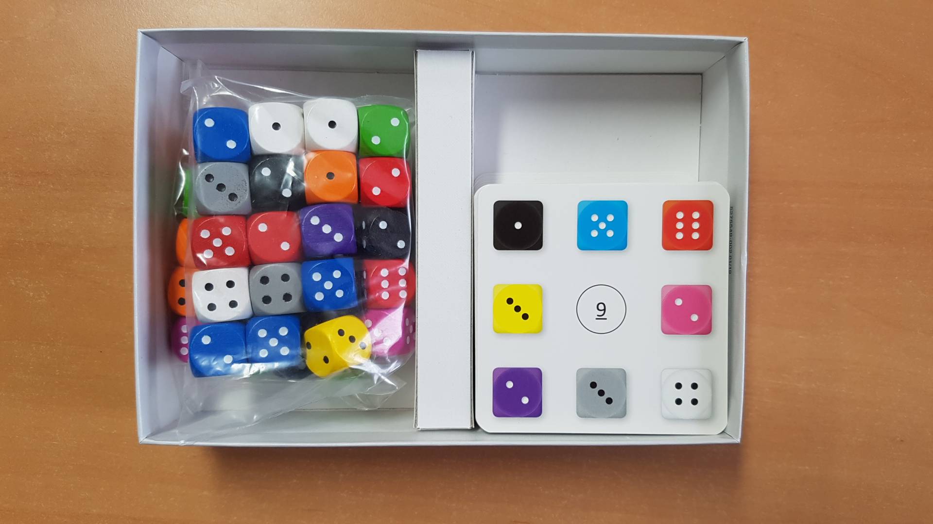 40 bunte Würfel liegen in der Tischmitte. Jeder Spieler hat drei Aufgabenkarten vor sich liegen, und los geht s! Alle spielen gleichzeitig. Wer kann die meisten Würfel auf seinen Karten platzieren (Pluspunkte) und macht dabei die wenigsten Fehler (Minuspunkte)?