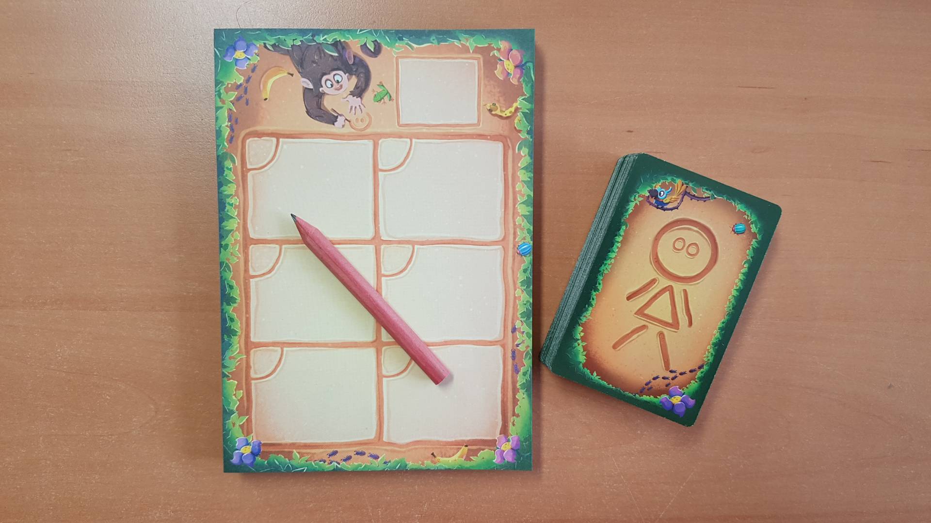 Ein affenstarkes, kooperatives Zeichen- und Rätselspiel. Die beiden Affenkinder haben einen Heidenspaß bei ihrem Dschungelrätsel. Spielt ihr mit? Nur eine Person weiß, welche Sandfigur gesucht wird. Die anderen zeichnen mögliche Figuren, die weitere Hinweise geben. Versucht, mit so wenig Zeichnungen wie möglich der Lösung auf die Spur zu kommen. Behaltet alle Informationen im Blick, sprecht euch ab und kombiniert clever. So knackt ihr das Rätsel schneller als ‘ne Kokosnuss!