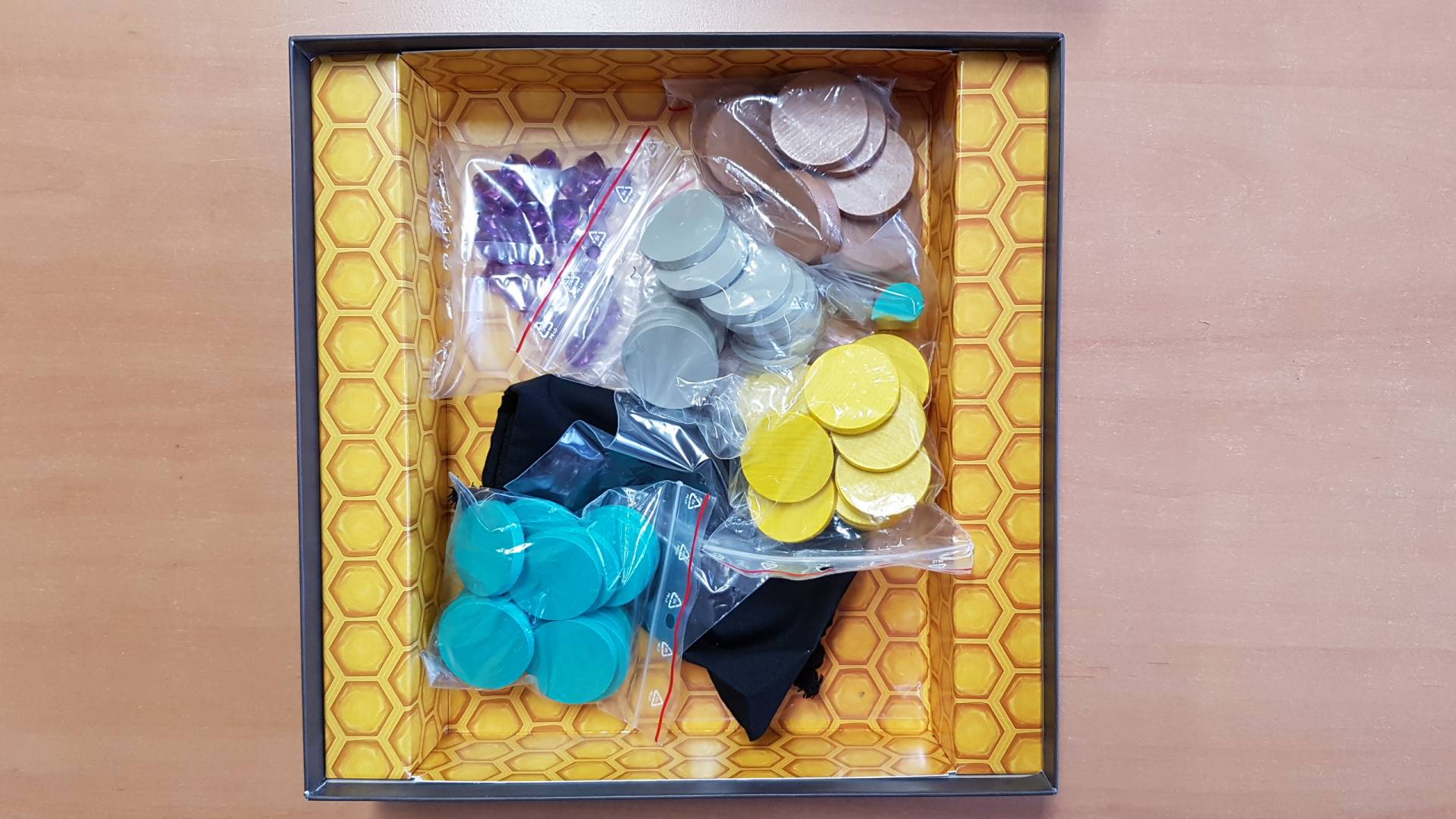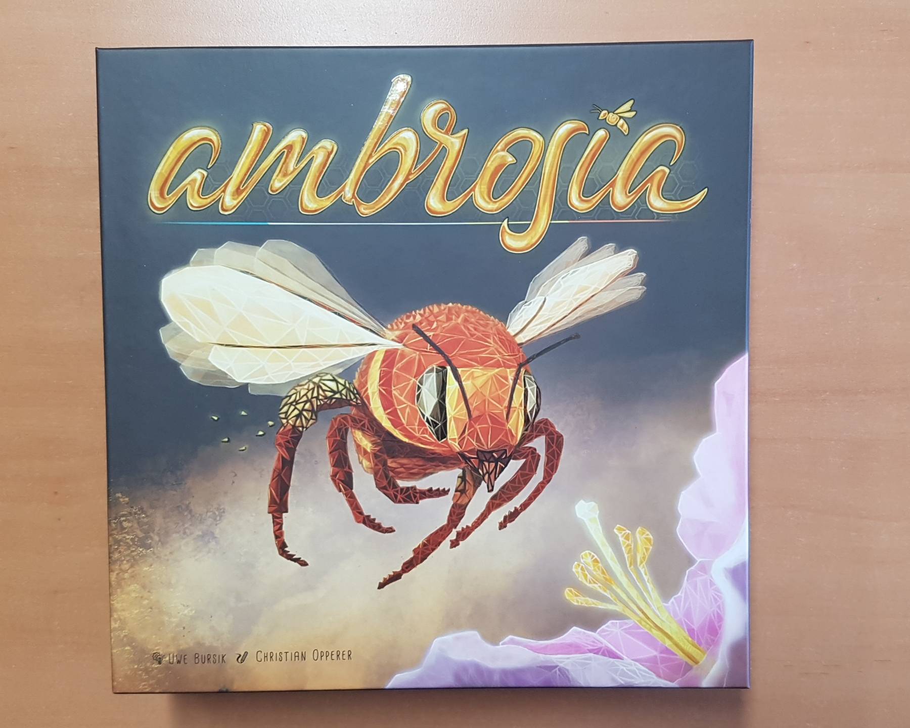 In Ambrosia ziehen 2-4 Spieler als Bienenvölker mit ihren Spiel- und Sondersteinen auf verschiedene Wertungsfelder.