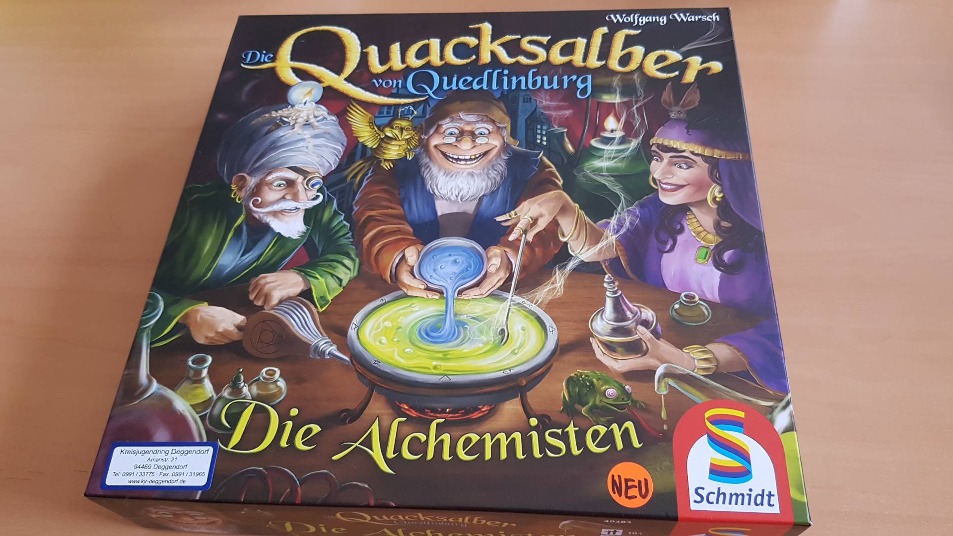 In der neuesten Erweiterung für das Kennerspiel des Jahres 2018 geht‘s ans Eingemachte: Die Alchemisten von Quedlinburg sind inzwischen weit über die Grenzen der Stadt hinaus bekannt. Ihre Heilkünste sind ebenso berühmt wie berüchtigt. Hilfesuchende kommen von weit her um ihre – teilweise überaus exotischen – Beschwerden „fachkundig“ behandeln zu lassen. Hühneraugen, Hexenbuckel und Vampirismus (nicht selten als Polymorphe Lichtdermatose fehldiagnostiziert) sind nur einige auftretenden der Krankheiten. Hier werden die besten ihrer Zunft benötigt: Die Alchemisten von Quedlinburg nehmen sich der Härtefälle im Quacksalber-Geschäft an. Mit hochtechnisierten Apparaturen destillieren sie Essenzen um die Leiden ihrer Patienten zu lindern. Durch das Destillieren erhalten die Spieler wertvolle Boni und Sonderfunktionen, die zusätzliche Vorteile im weiteren Spielverlauf verschaffen. Dazu enthält die Erweiterung 20 neue Wahrsagekarten und zwei neue Zutaten-Bücher für das Hexenkraut.