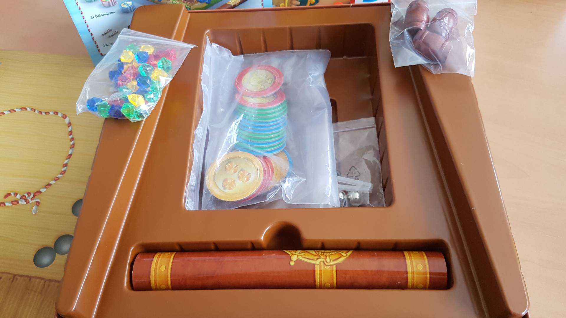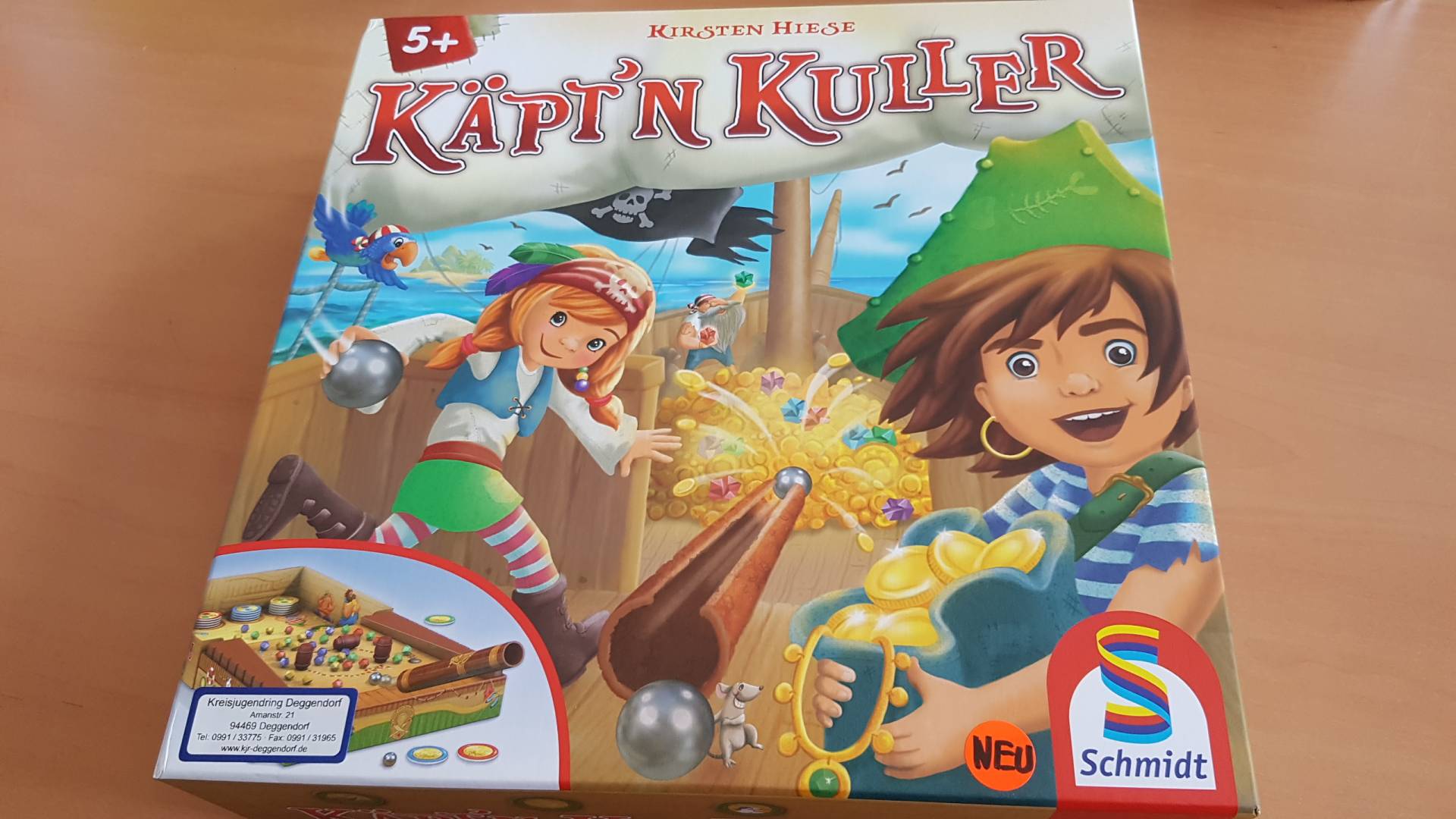 Auf dem Piratenschiff von „Käpt´n Kuller“ geht es turbulent zu. Zwei bis vier Spieler ab fünf Jahren versuchen sich Goldmünzen zu sichern. Doch das gelingt nur, wenn sie geschickt die Kugel durch ein Rohr sausen lassen und die Diamanten treffen. Ziel ist es, von jeder der vier Münzarten eine zu ergattern. Teil der Schiffsausstattung sind ein Rohr, zwei Kugeln und – besonders wichtig – Diamanten und Goldmünzen. Reihum bringen die jungen Piraten die Kugel zum Sausen. Wer es schafft, die Diamanten mit der Kugel vom Oberdeck ins Unterdeck zu befördern, darf diese behalten und vor sich ablegen. Eine der offenliegenden Goldmünzen darf sich ein Spieler nehmen, sobald er die Diamanten ergattert hat, die auf der Münze abgebildet sind. Für geübte Piraten gibt es auch noch eine Profi-Spielvarianten, bei der man beim Kegeln noch etwas geschickter sein muss, weil nun teilweise Holzfässer als Hindernisse im Weg stehen.