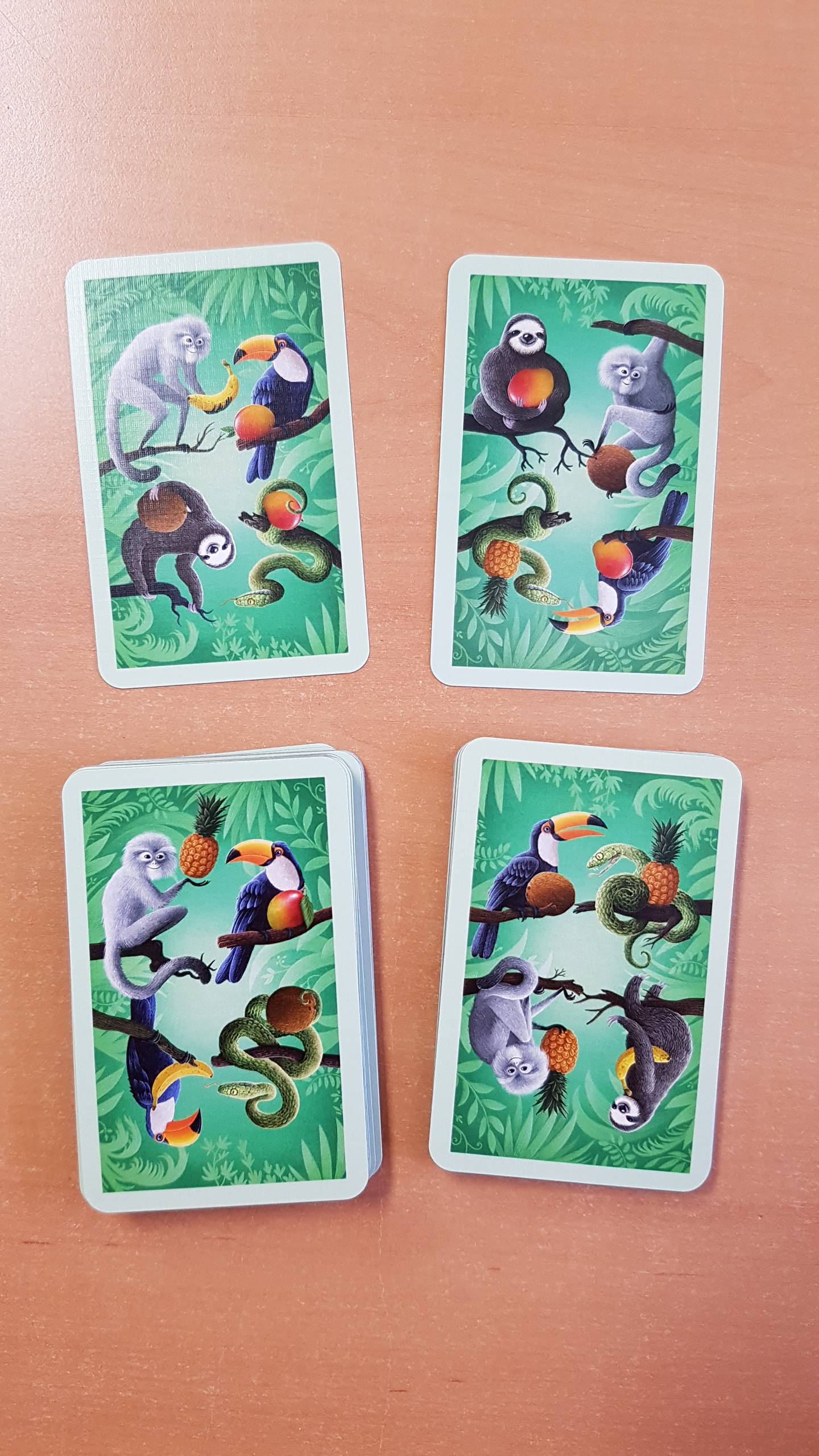 Wer an der Reihe ist, spielt seine oberste Karte offen aus… So, dass sie alle gut sehen können.