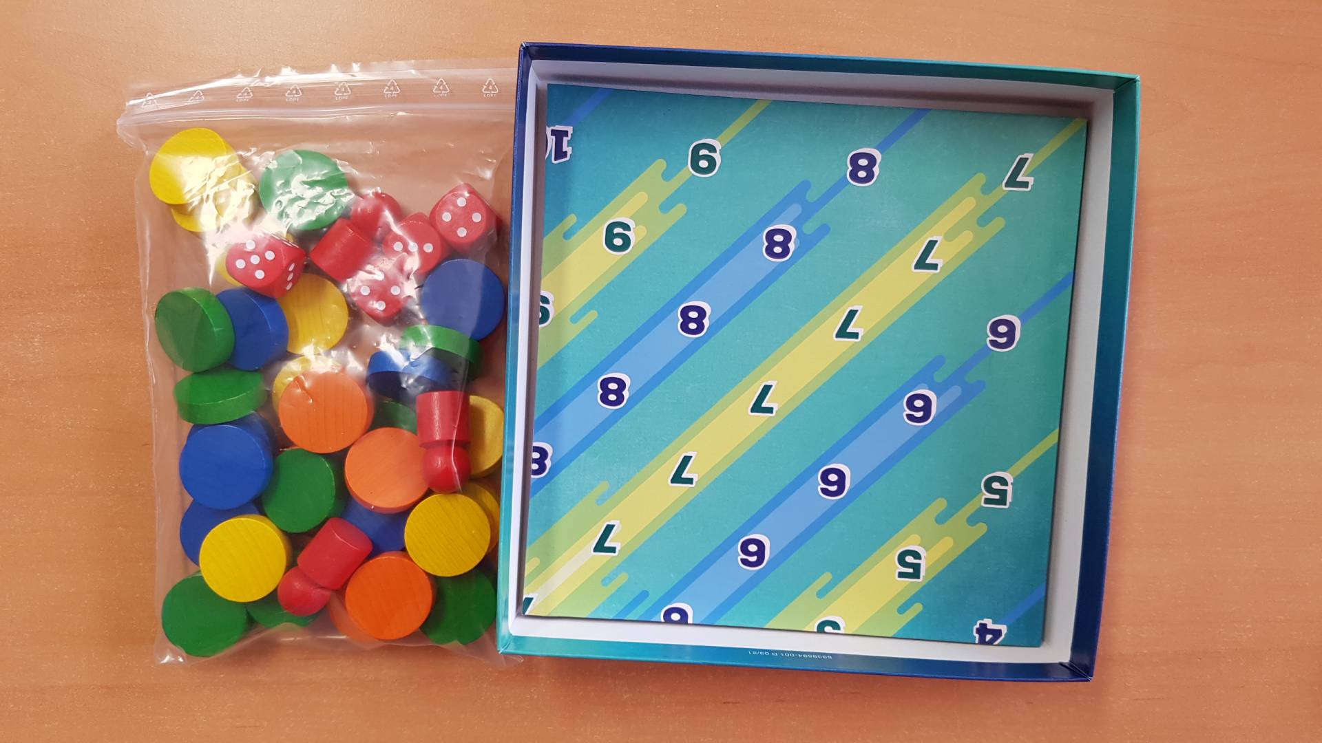 Ein großes Kunststoffspielbrett in Stoppschildform diente in der 1. Auflage von Can t Stop als bestens passende Anzeigetafel. Auf dieser gibt es elf unterschiedlich lange Spielfeld-Kolonnen oder -Reihen, die von 2 bis 12 durchnummeriert sind.