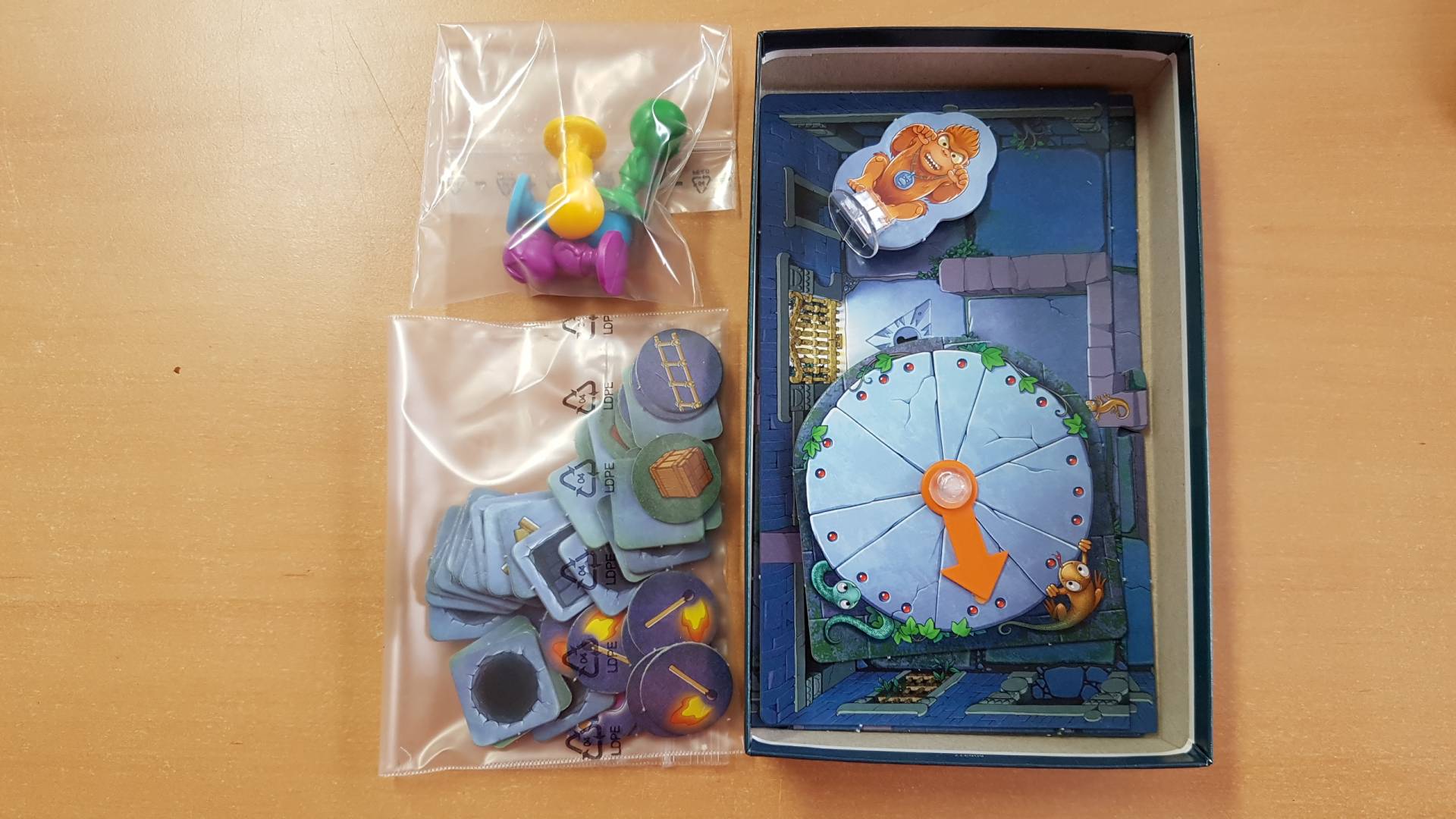Die vier Forscher bewegen sich im Inneren des Tempels vorwärts. Eine Drehscheibe gibt an, wie weit sie gehen dürfen. Verdeckte Tempelplatten werden im Ziel-Raum umgedreht und es ist spannend, was sich darunter verbirgt. Ist es ein Schlüssel, an dessen Symbol man sich später erinnern soll? Oder tappt man in eine Falle? Bei jedem Zug bewegt sich der wilde Affenwächter vorwärts, immer in Richtung des am nächsten stehenden Forschers. Erwischt er einen Forscher, fällt er vor Schreck um! Gut, wenn er einen magischer Zaubertrank besitzt! Leitern zum Befreien aus Fallen und Streichhölzer, um unbekannte Räume zu beleuchten, helfen den Spielern, den Tempel zu durchforschen und alle Schlüssel zu finden, die für das Öffnen der Türen nötig sind.