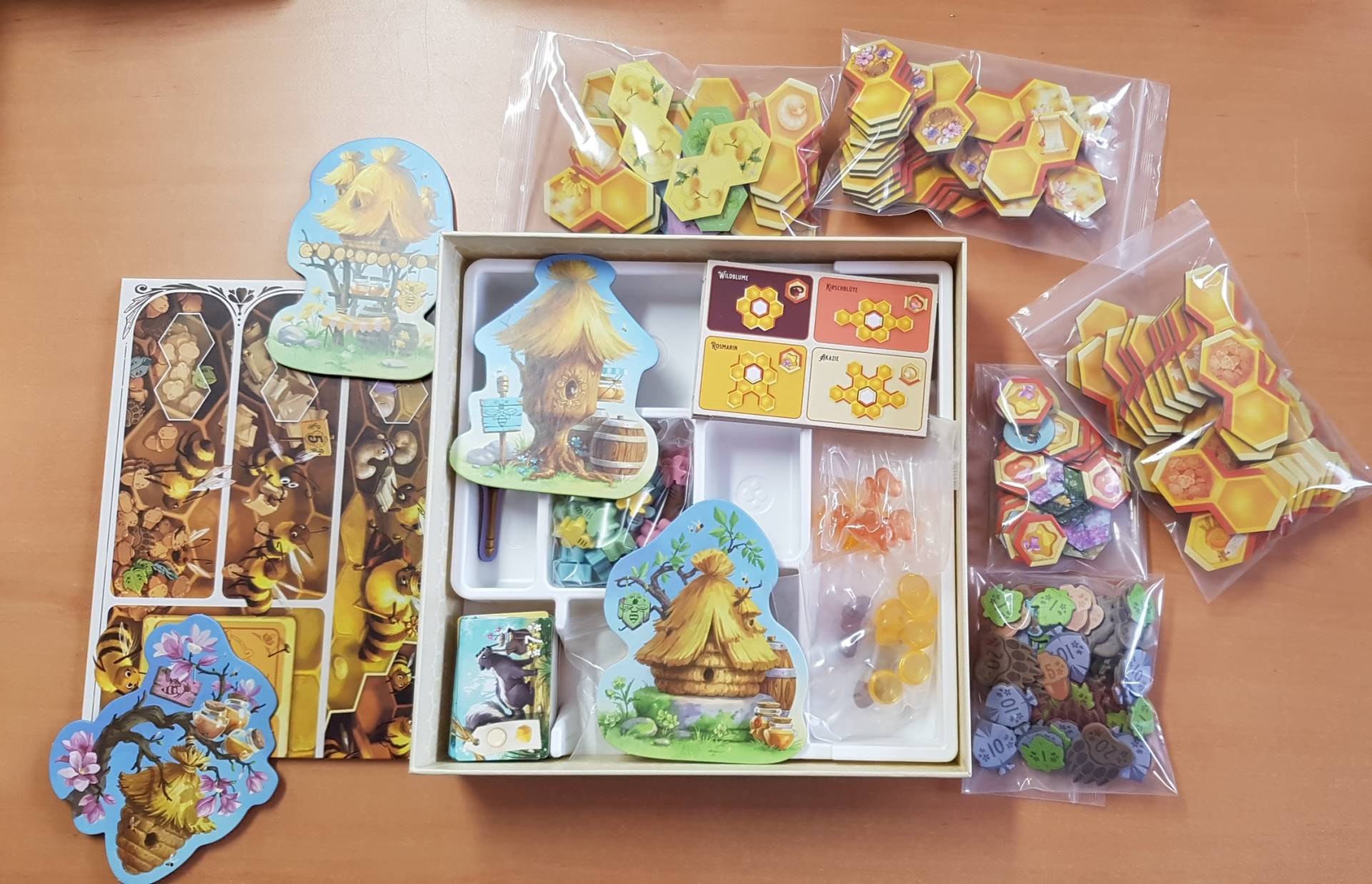 Honey Buzz ist ein Workerplacement, bei dem die Spieler ihren persönlichen Bienenstock ausbauen. Dazu ziehen sie verschiedene Wabenplättchen, die Aktionen ermöglichen, die im Laufe des Spiels ausgelöst werden. Jedes Plättchen steht für eine andere Aktion. Immer wenn ein Plättchen so gelegt wird, dass es ein bestimmtes Muster vervollständigt, wird eine Reihe von Aktionen ausgelöst, und zwar in der Reihenfolge, die der Spieler wählt. Ein Plättchen, das in der ersten Runde gezogen wird, kann bis zu drei Mal im Laufe des Spiels ausgelöst werden. Alles hängt davon ab, wie der Spieler seine Bienen platziert und seinen Bienenstock aufbaut. Denn im Honiggeschäft sind effiziente Prozesse das A und O.