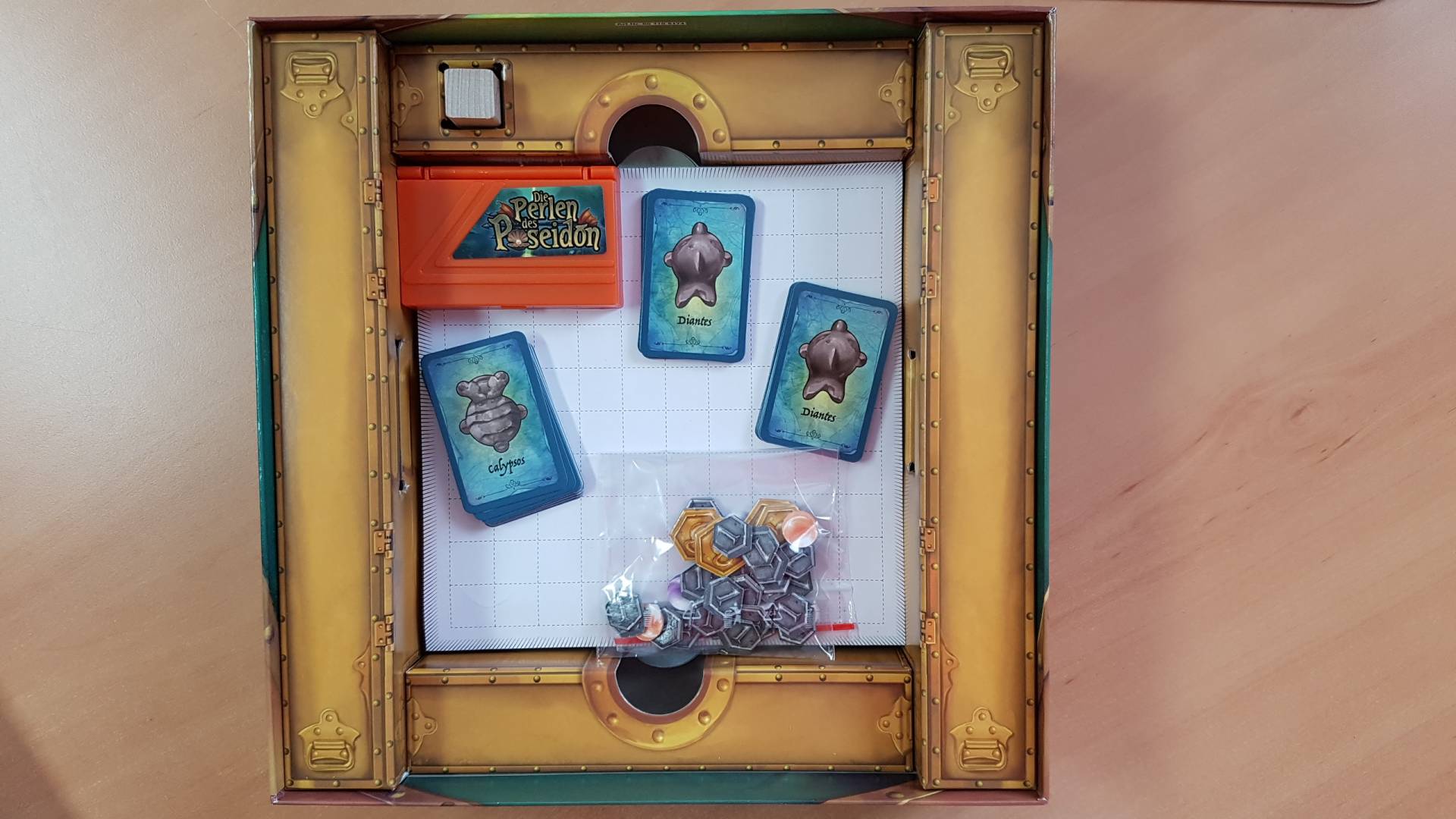 Ihr stempelt reihum die Umrisse von 4 Gegenständen sichtbar. Sobald ihr ein Objekt erkennt, enträtselt ihr mit Hilfe der Schatzkarten, wo sich die zugehörige Perle verbirgt. Jeder von euch möchte sie als Erster entdecken und nach dem Gegenstand benennen, neben dem sie gefunden wurde. Wer beim Aufspüren von Perlen und Namen besonders findig ist, wird mit den meisten Poseidontalern belohnt und gewinnt.