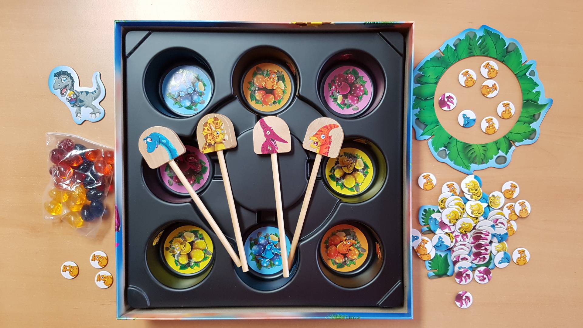 Die Dinos erwarten Nachwuchs. Sicher und warm liegen die Dinoeier in den Nestern. Doch Dori Dino liebt es, die bunt glitzernden Eier umher zu rollen, damit alles schön kunterbunt aussieht. Werden die anderen Spielenden es schaffen, die Eier zurück in die richtigen Nester zu kullern, bevor die Dinobabies schlüpfen?