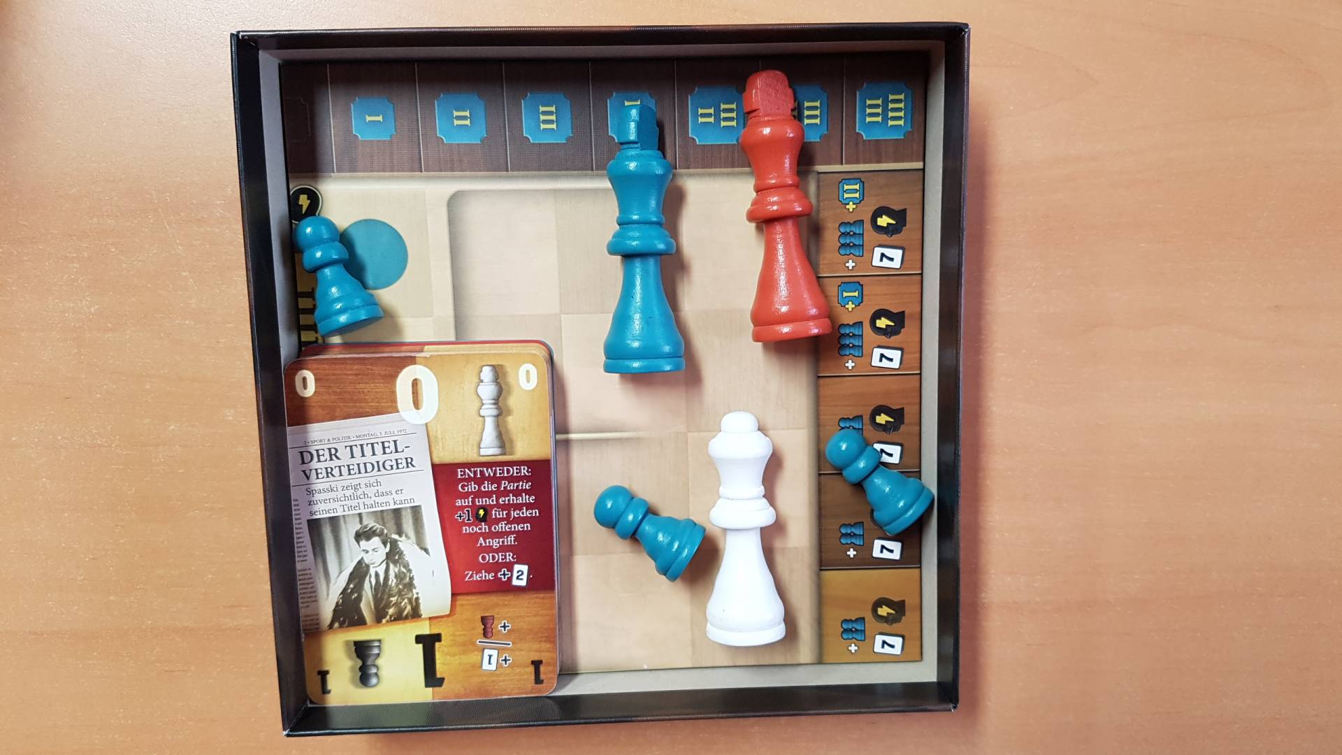 Dieses taktische Kartenspiel für 2 Personen fängt den Geist des berühmten Schach-Wettkampfes von 1972 perfekt ein. Dabei geht nichts über das belohnende Gefühl, genau im richtigen Moment einen Karteneffekt auszulösen, der die siegessichere Gegenseite Schachmatt setzt.