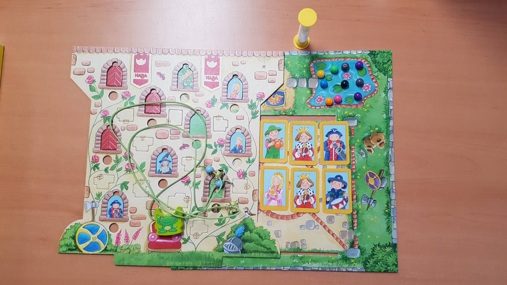 Platsch, schon wieder ist einem Burgbewohner etwas aus dem Fenster gefallen und in den Burgteich gerollt: Die Prinzessin vermisst ihre goldene Kugel, der Magier sucht verzweifelt seine Kristallkugel und der Koch hat seinen Kohlkopf verloren. Was sollen sie bloß tun? Nur Francesco Kletterfrosch kann die Sachen wieder zurückholen. Um den steilen Burgturm hinaufzuklettern und den Besitzer der Kugel aufzuspüren, braucht er aber Hilfe. Erst öffnen die Spieler ein Fenster, um den jeweiligen Burgbewohner dahinter zu finden. Dann balancieren sie den Kletterfrosch mit der Kugel zu ihm hoch, indem sie gekonnt an den Schnüren ziehen. Doch aufgepasst, dass die Kugel nicht in ein falsches Mauerloch fällt. Wer mit Geschick und Köpfchen die meisten Kugeln nach oben bringt, gewinnt.