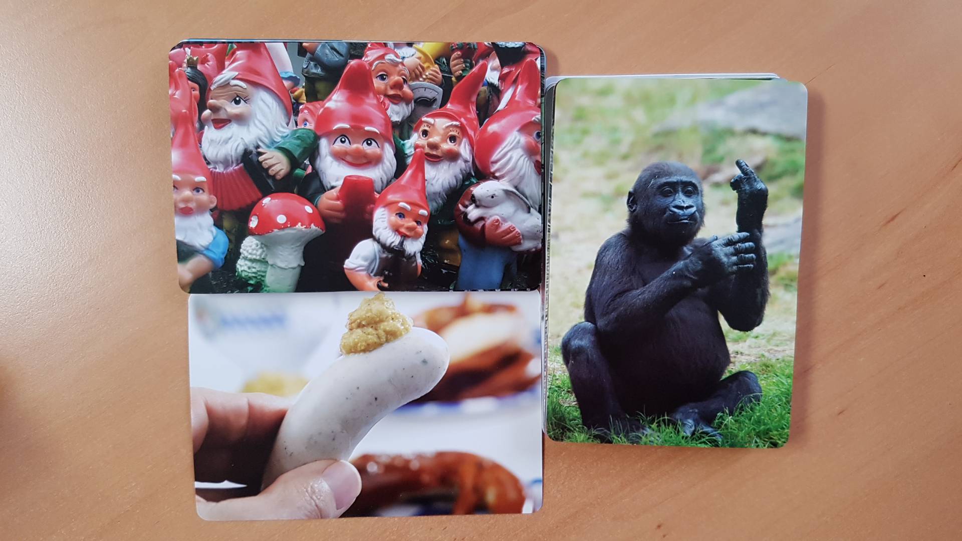 Memes sind ein virales Internetphänomen, das seit Jahren die digitale Welt erobert. Mit What Do You Meme? halten die schrägen Wort-Bild-Kombinationen jetzt auch Einzug auf die analogen Spieletische. What Do You Meme? beinhaltet 72 großformatige Bildkarten mit bekannten Memes aus dem weltweiten Netz und über 360 witzige, zotige, skurrile oder einfach nur lustige Textkarten. Jeder Spieler hat 5 Textkarten auf der Hand. In jeder Runde ist einer aus der Runde der Punktrichter. Er wählt eine der großformatigen Bildkarten aus und zeigt sie seinen Mitspielern. Diese wählen dann passend zum Bild eine ihrer Textkarten aus und schieben diese verdeckt dem Punktrichter zu. Der Text, der am besten, lustigsten oder einfach am verrücktesten zum ausliegenden Bild passt, punktet und kreiert damit ein neues Meme – ohne WLAN, Upload und Datenvolumen.