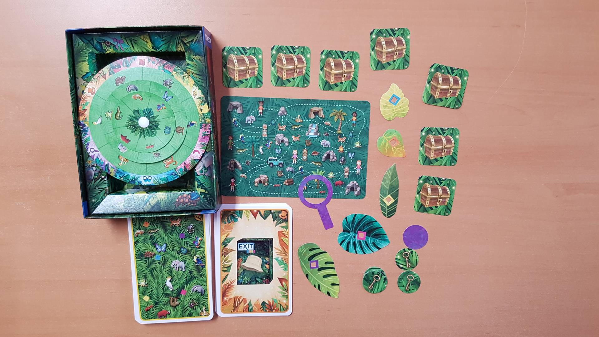Ein Rätselabenteuer im Dschungel: Im Team oder alleine lösen Kinder ab 6 Jahren abwechslungsreiche Rätsel um Schatzkisten zu öffnen. Spielerisch werden sie an bekannte Mechanismen von EXIT®- Das Spiel herangeführt. In jeder Runde werden sechs unterschiedliche Rätselarten, die auf 36 großformatigen Bildkarten abgebildet sind, neu kombiniert. Somit ist das Spiel wiederspielbar und garantiert ein neues Spielerlebnis für jede Runde. Ein spannendes Spiel für den Einstieg in die EXIT® - Welt.