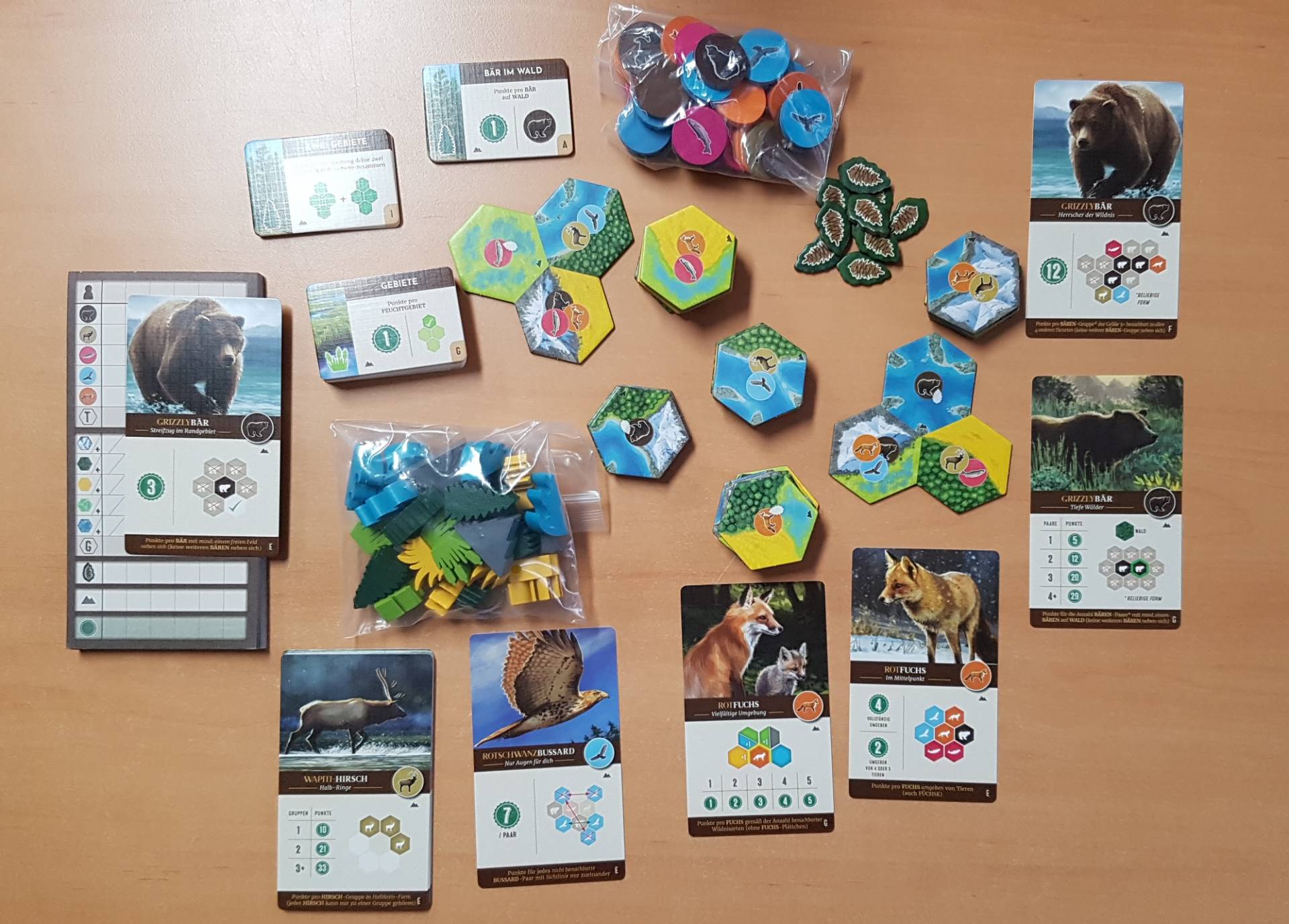 Mit dieser Erweiterung erhaltet ihr neben den neuen Landmarks auch neue Tier-Wertungskarten sowie Material für 5 und 6 Spieler.