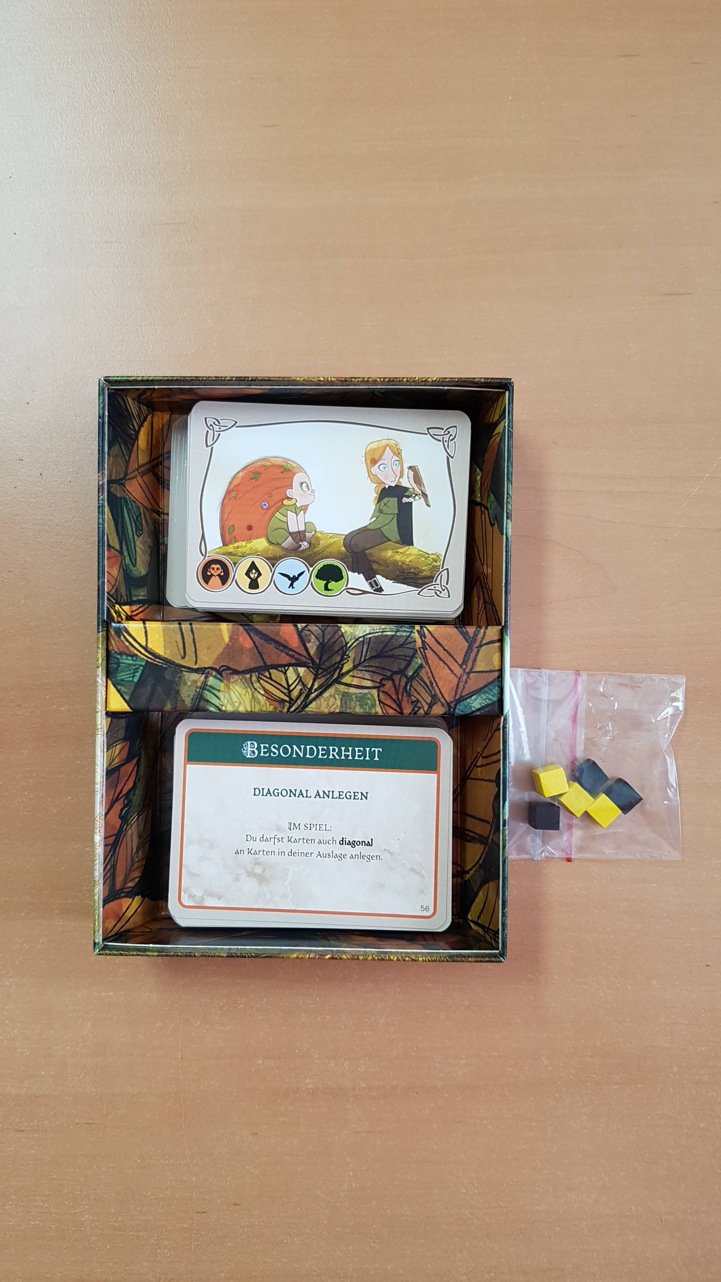 In diesem liebevoll gestalteten Legespiel versucht ihr mit einer Auslage aus Ziel- und Geschichtenkarten die meisten Punkte zu sammeln. Dazu wählt ihr aus dem Markt abwechselnd eine der doppelseitigen Spielkarten, die auf einer Seite eine Zielvorgabe zeigen und auf der anderen ein Bild der Geschichte mit farbigen Symbolen. Diese legt ihr so in eure Auslage, dass ihr mit den farbigen Symbolen vorgegebene Muster, Formen und andere Ziele erfüllt. Habt ihr eine Auslage von 5 × 5 Karten gebildet, wertet ihr diese.