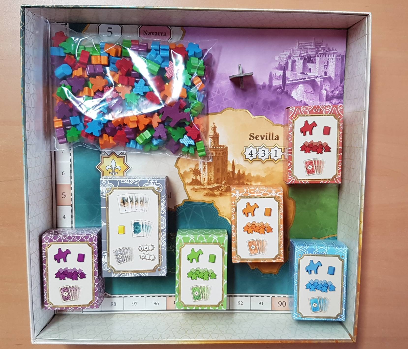 Vom Grund-Gedanken her ist El Grande ganz einfach, denn ein jeder Spieler versucht in den 9 spanischen Provinzen möglichst zahlreich vertreten zu sein, um bei den 2 Zwischen- und der einen Endwertung möglichst viele Punkte zu erobern. Dazu müssen in den Runden vor der Wertung die eigenen Caballeros (Anhänger) möglichst taktisch in den Provinzen verteilt werden. Dazu müssen die möglichen Zwischenwertungen genau dann ausgelöst werden, wenn man sich wirklich gut auf sie vorbereitet hat oder man versucht einfach nur immer und überall dabei zu sein und seine Mitspieler dabei etwas in Schacht zu halten. Beides ist erstens sinnvoll und zweitens nicht unbedingt immer möglich. Meistens scheitert es daran, daß die Mitspieler die schönen Aktionen vor einem machen und man selber nur noch reagieren kann. Da das noch nicht alles gewesen sein kann, nimmt man sich zur nächsten Wertung eine bessere Taktik vor... Ob es gereicht hat, zeigt sich dann nach der dritten Wertung am Ende des Spiels.