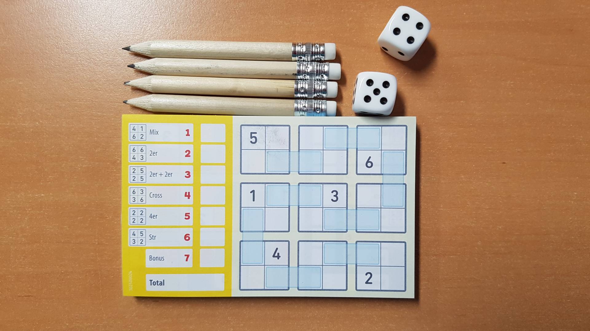 Nach 15 Würfen endet das Spiel und die 15 Quadrate werden ausgewertet. Dabei gibt es für Mix, 2er etc. entsprechend Punkte.