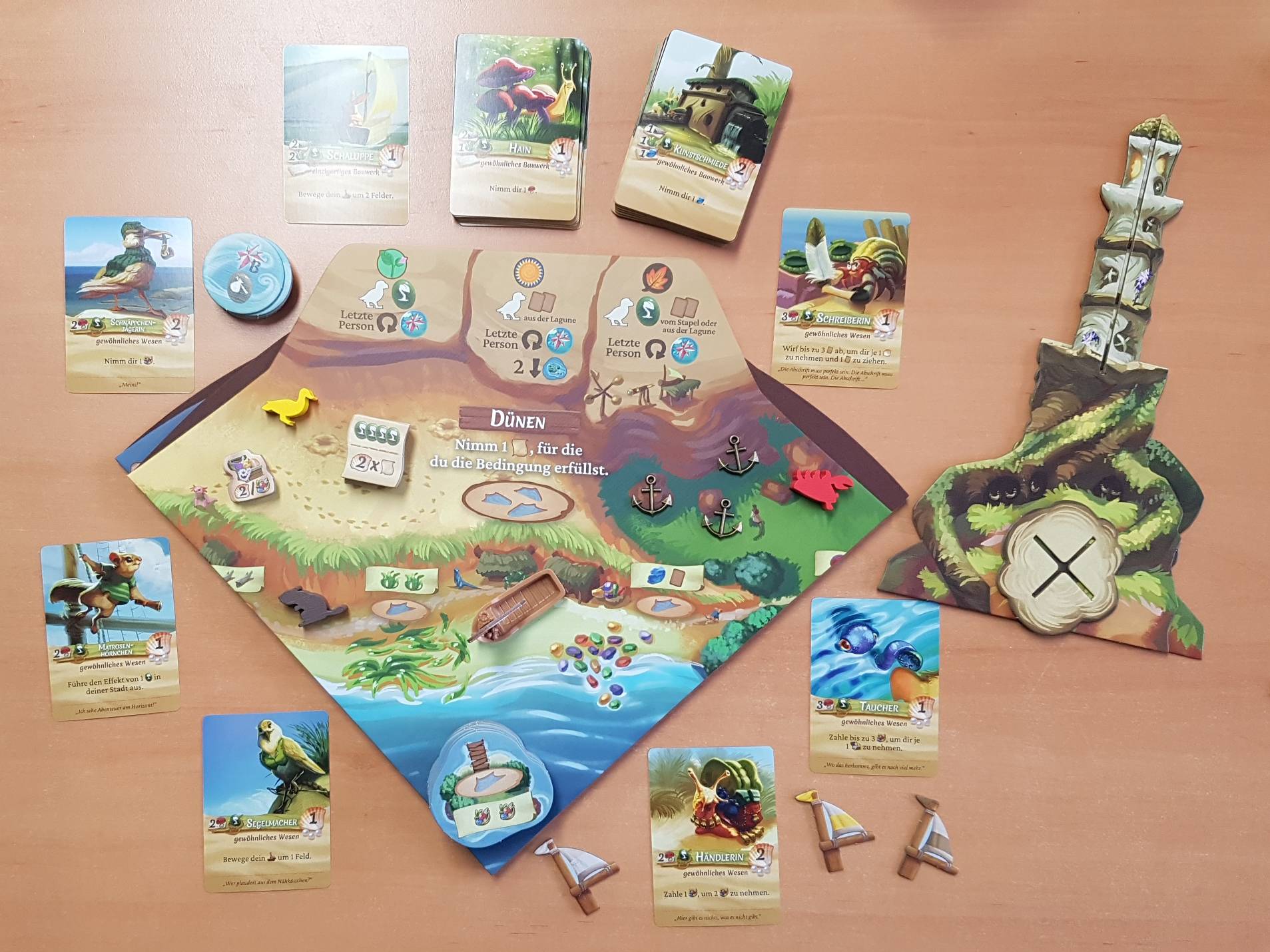 Die Welt von Everdell wächst weiter: Mit dem eigenständigen Spiel Farshore – Ein Spiel in der Welt von Everdell entdecken die Spielenden nun das Land an der nördlichen Grenze Everdells. Dazu lernen sie vier neue, maritime Tierarten kennen, die auch mit Everdell kombiniert werden können: Krabben, Biber, Enten und Papageientaucher.