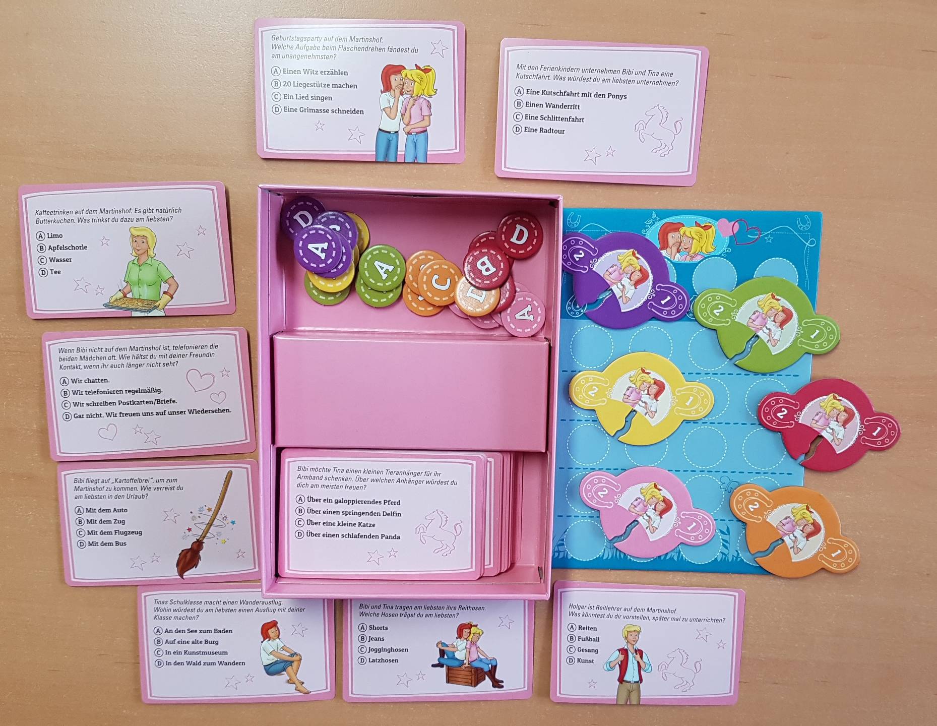 Ihr seid beste Freundinnen wie Bibi und Tina und wisst über eure kleinen und großen Geheimnisse, Träume und Wünsche Bescheid? Findet in diesem Spiel heraus, wie gut ihr euch wirklich kennt! Jede Menge spannende Fragekarten zu den unterschiedlichsten Themenbereichen stellen euch immer wieder neu auf die Probe. Jeweils vier Antwortmöglichkeiten gibt es. Du weißt, wie du dich entscheidest? Aber kennst du auch die Antworten deiner Freundinnen? Wer die anderen am besten einschätzen kann, sammelt die meisten Punkte und gewinnt.