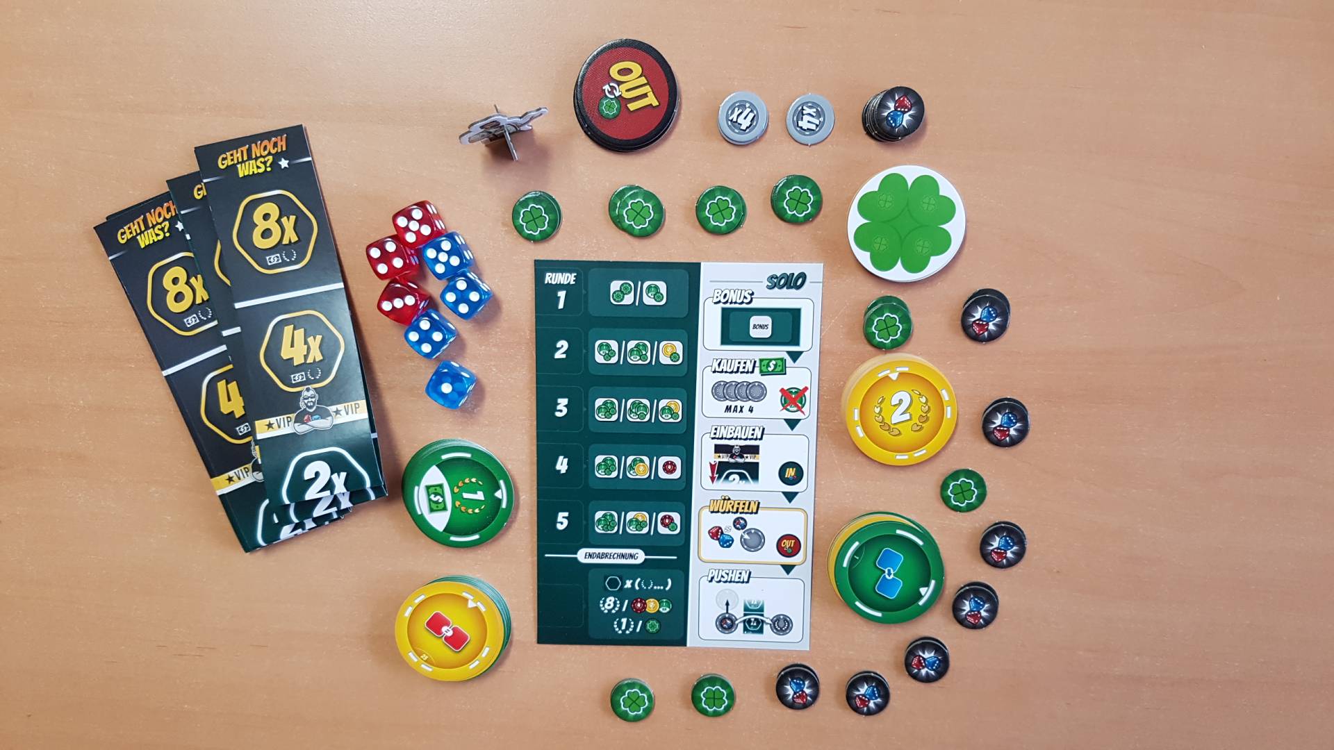 In diesem Würfelspiel schmiedet ihr wahrlich euer eigenes Glück! Ihr beginnt mit einer kleinen Auslage aus wenigen Aufgabenkarten und versucht, nach jedem Würfelwurf, genau 1 davon zu erfüllen. Im Laufe des Spiels baut ihr eure Auslage immer weiter aus und arbeitet euch so Schritt für Schritt in die punkte trächtigen Ebenen vor. Aber Achtung: Könnt ihr nach einem Wurf keine Karte erfüllen, habt ihr euch verzockt und fliegt aus der laufenden Runde. Baut eure Auslage klug auf, dann geht noch was!