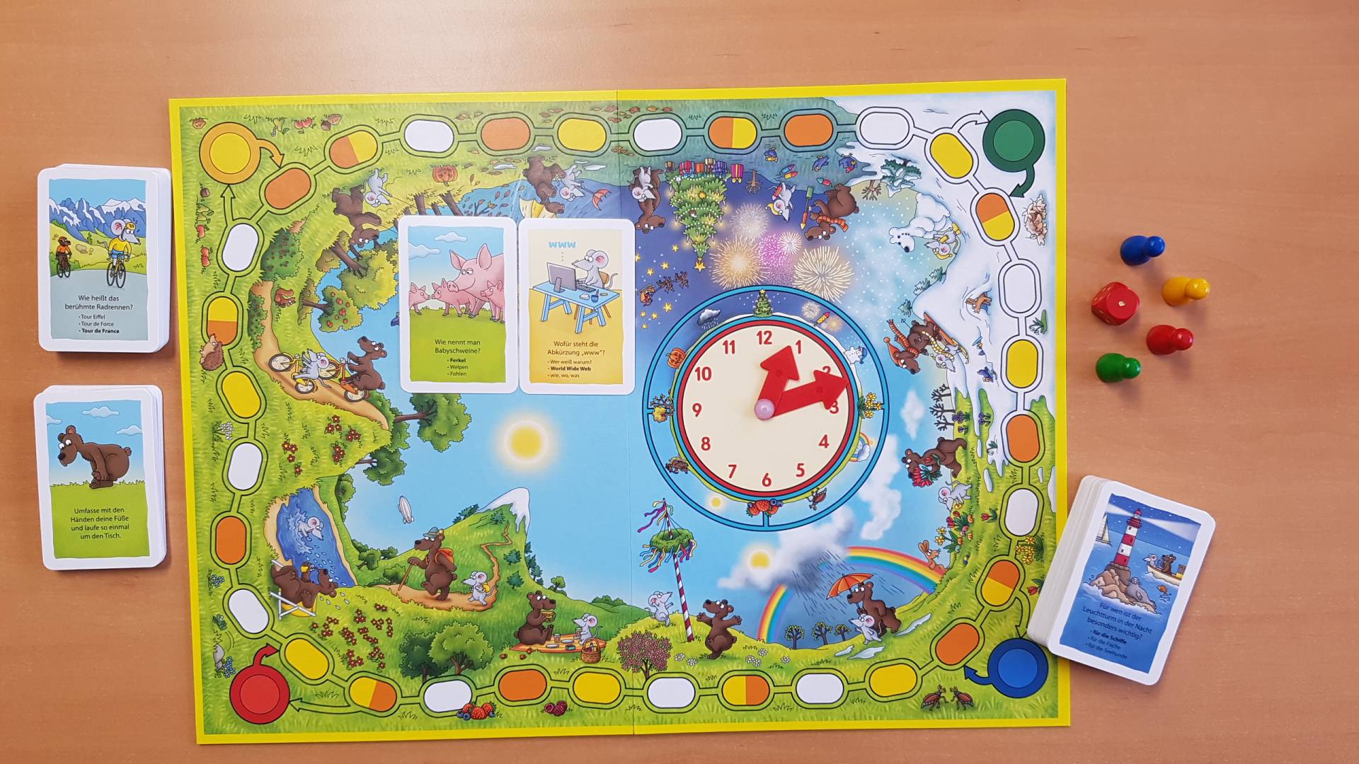 Weißt du, wie viele Flügel eine Libelle hat, wo der Eiffelturm steht oder womit man die Temperatur misst? Kannst du ein Schlagzeug nachmachen oder wie ein Huhn gackern? Kennst du die Uhr und die Jahreszeiten? In diesem lustigen Laufspiel kannst du nicht nur dein Wissen unter Beweis stellen, sondern auch wunderbar lachen. Die Maus Mo will immer etwas Neues wissen und der Bär Bo fordert zu lustigen Aktionen auf.