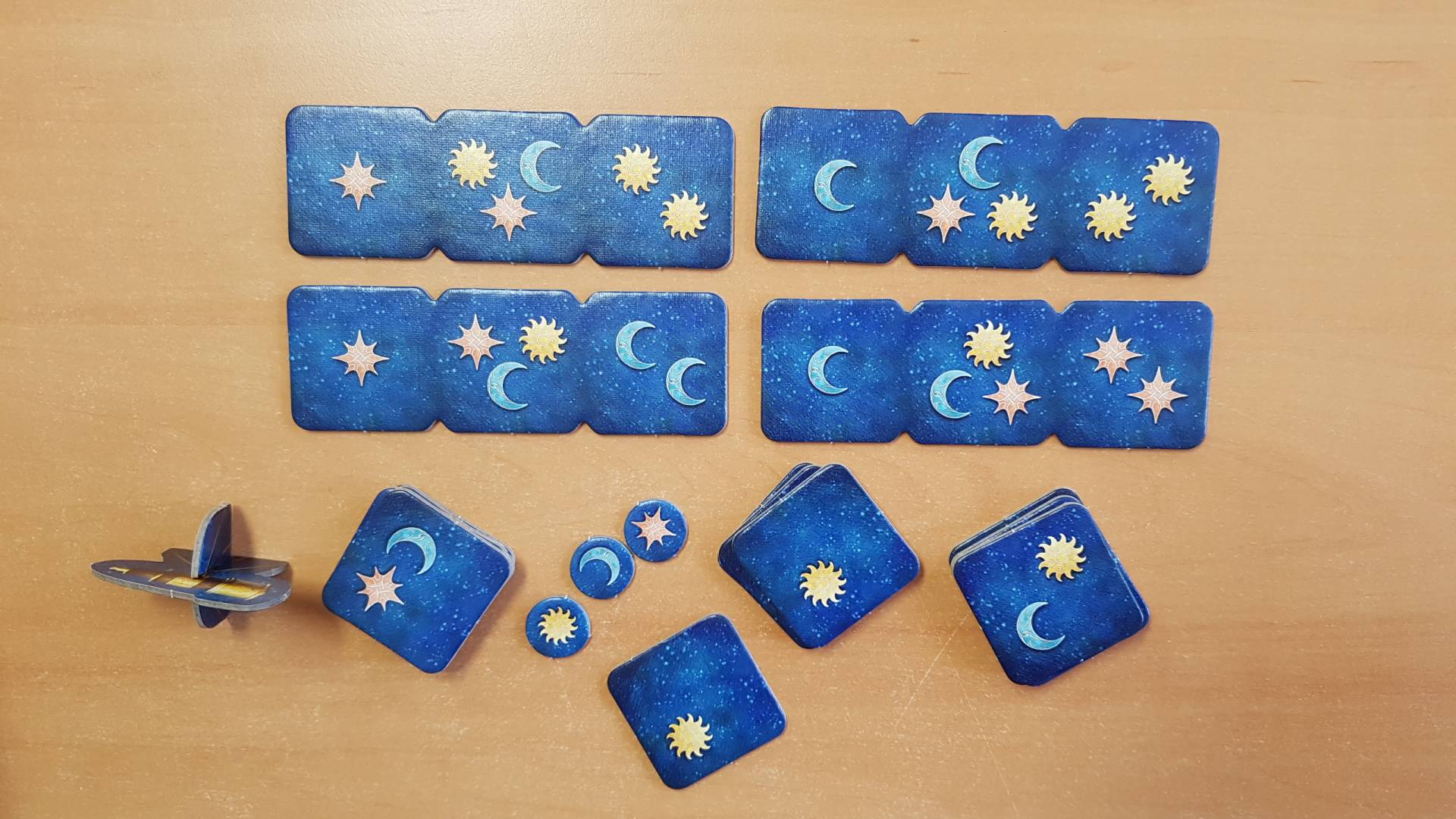Das himmlische Plättchenlegespiel Luminos, mit einfachen Regeln, aber kniffligen Entscheidungen. Jede Runde legst du ein Plättchen in deine Auslage. Sobald du ein Quadrat mit vier Plättchen vervollständigst, wird gewertet. Jedoch zählt nur das Symbol, welches am wenigsten vertreten ist. Werte dabei aber möglichst alle Symbole gleichmäßig, denn am Ende bekommst du die Siegpunkte nur für vollständige Sets aus Sonnen, Monden und Sternen.